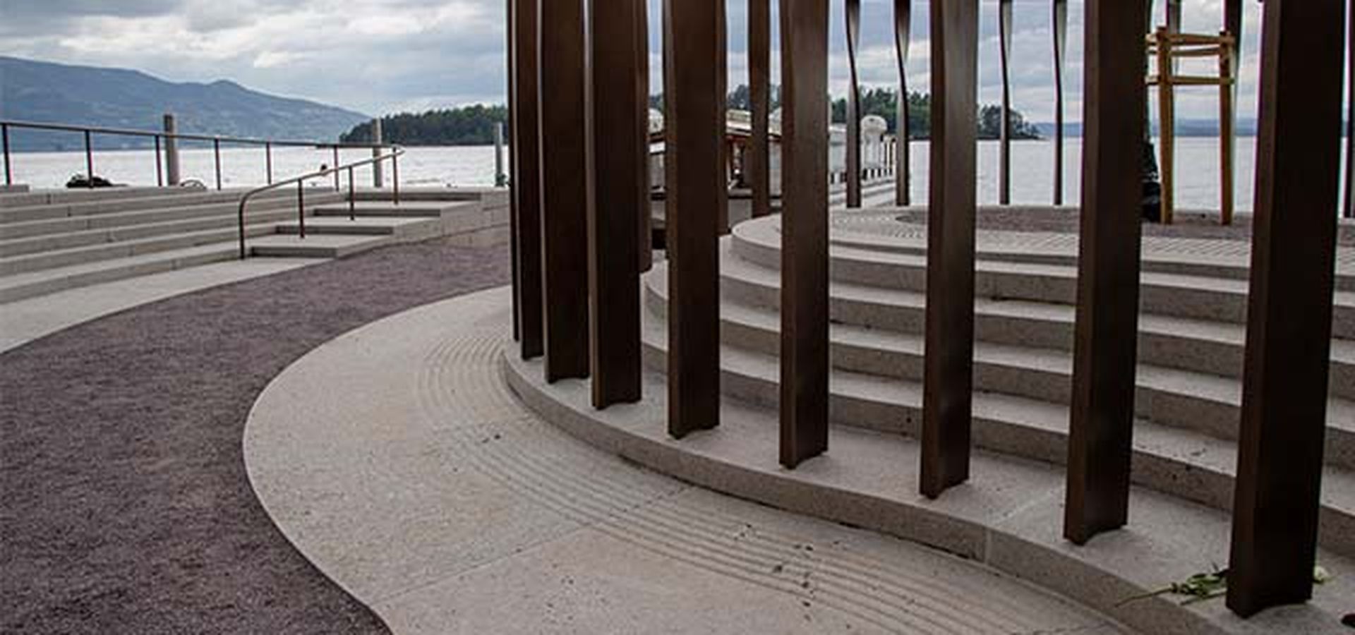 Mahnmal aus norwegischem Granit zum Gedenken der Opfer der Anschläge