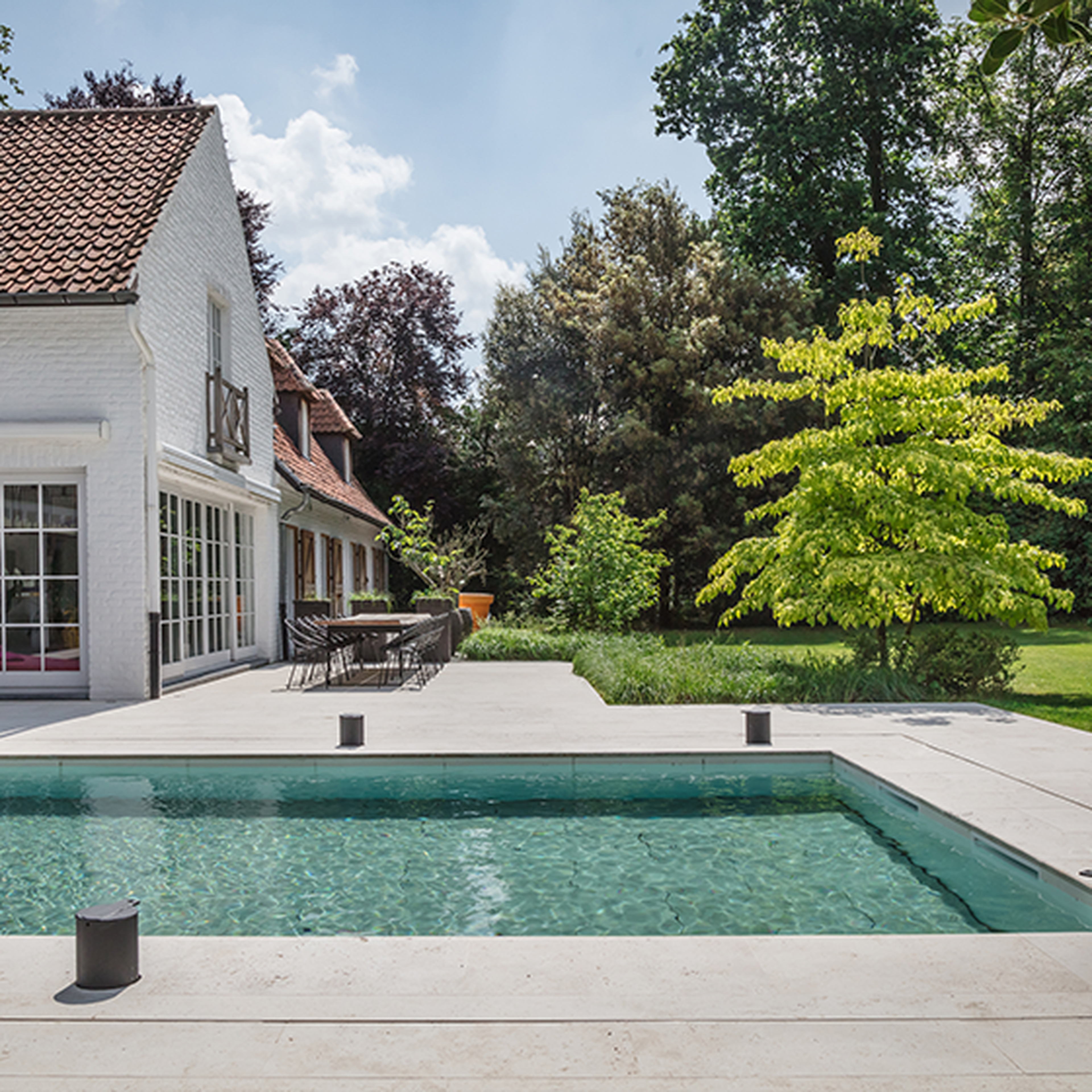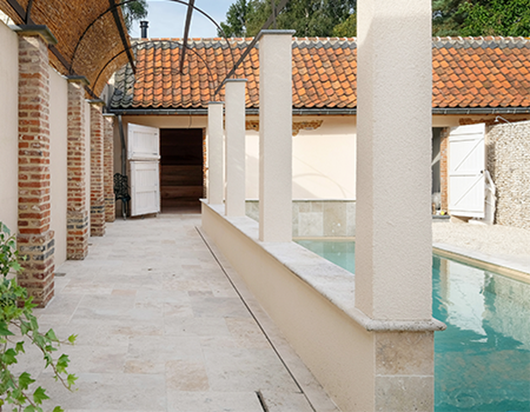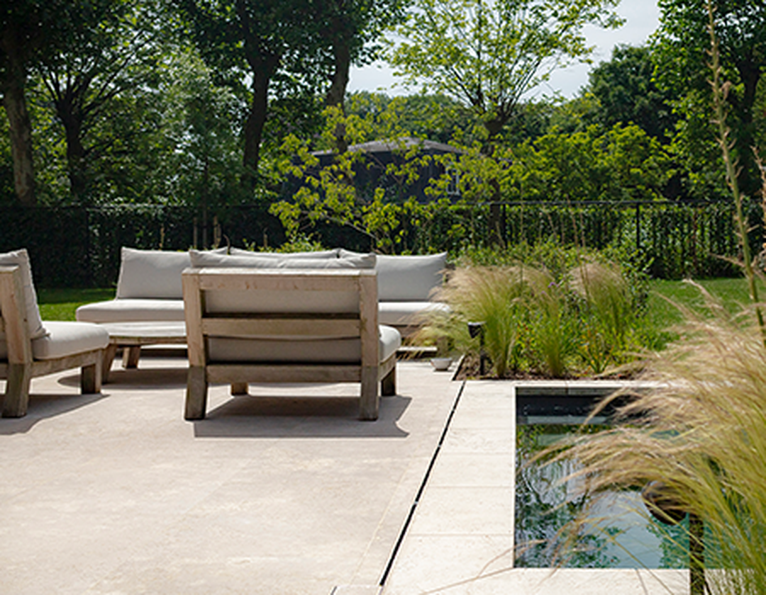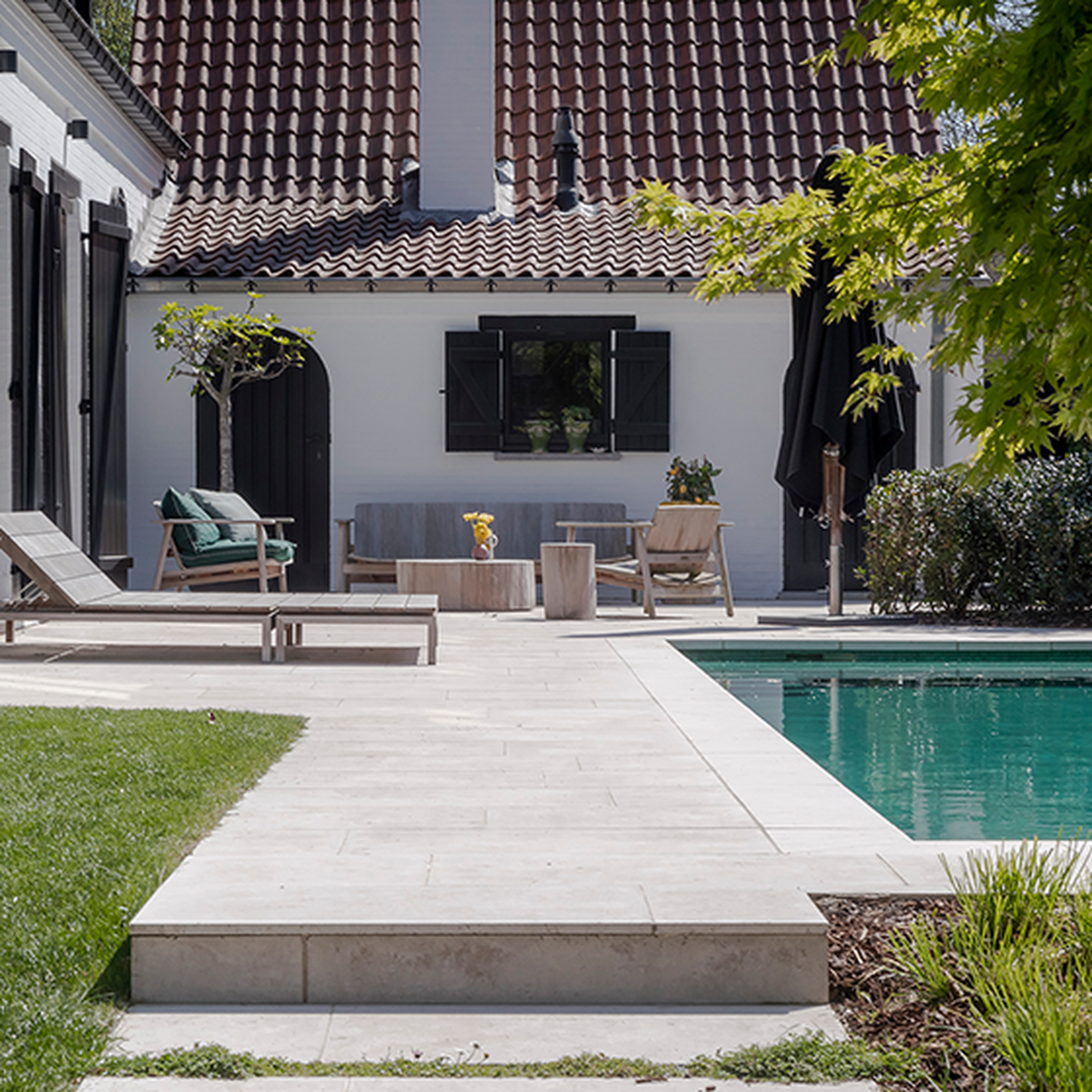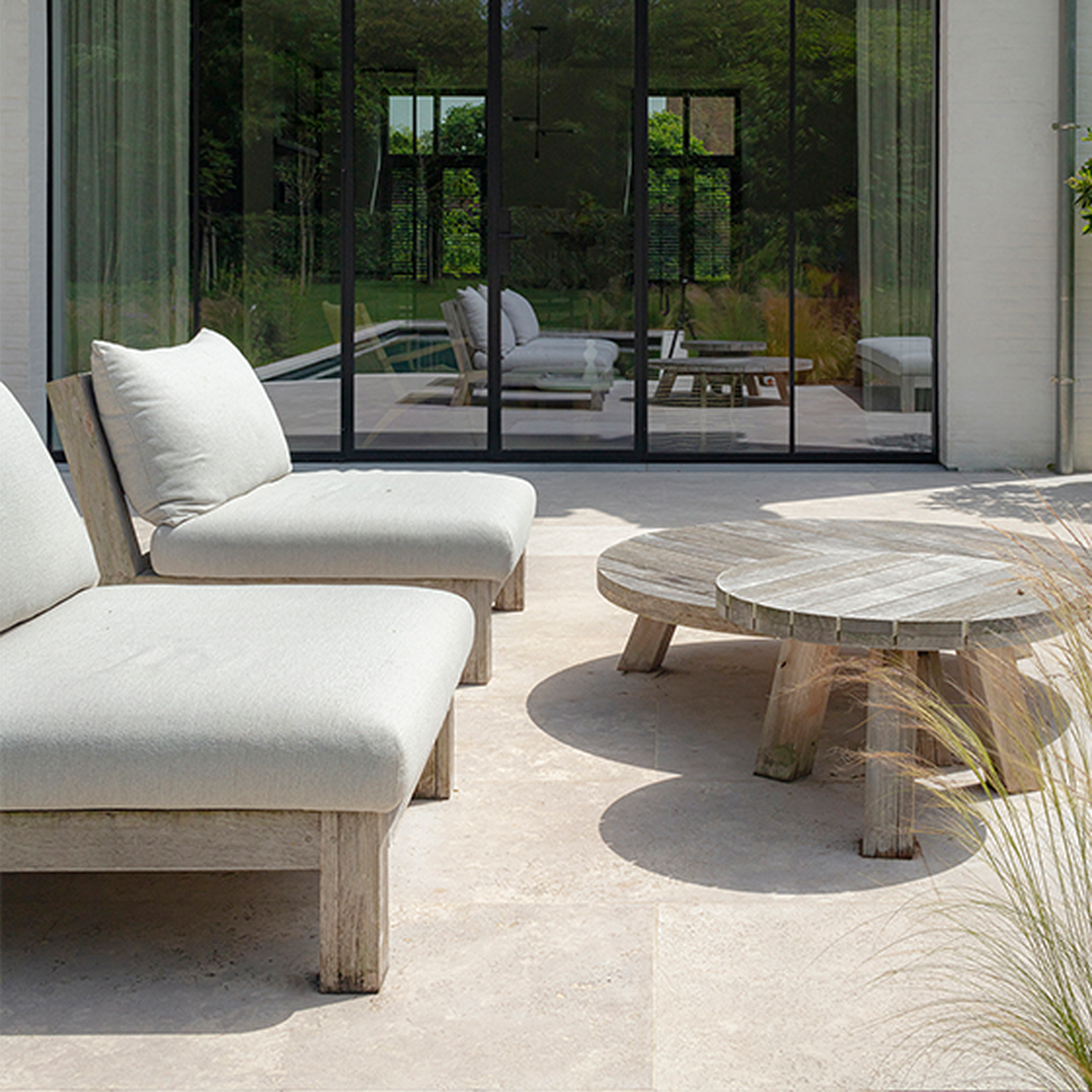 Terrasse & Schwimmbadumrandungen in Travertin Classic Beige (antico)