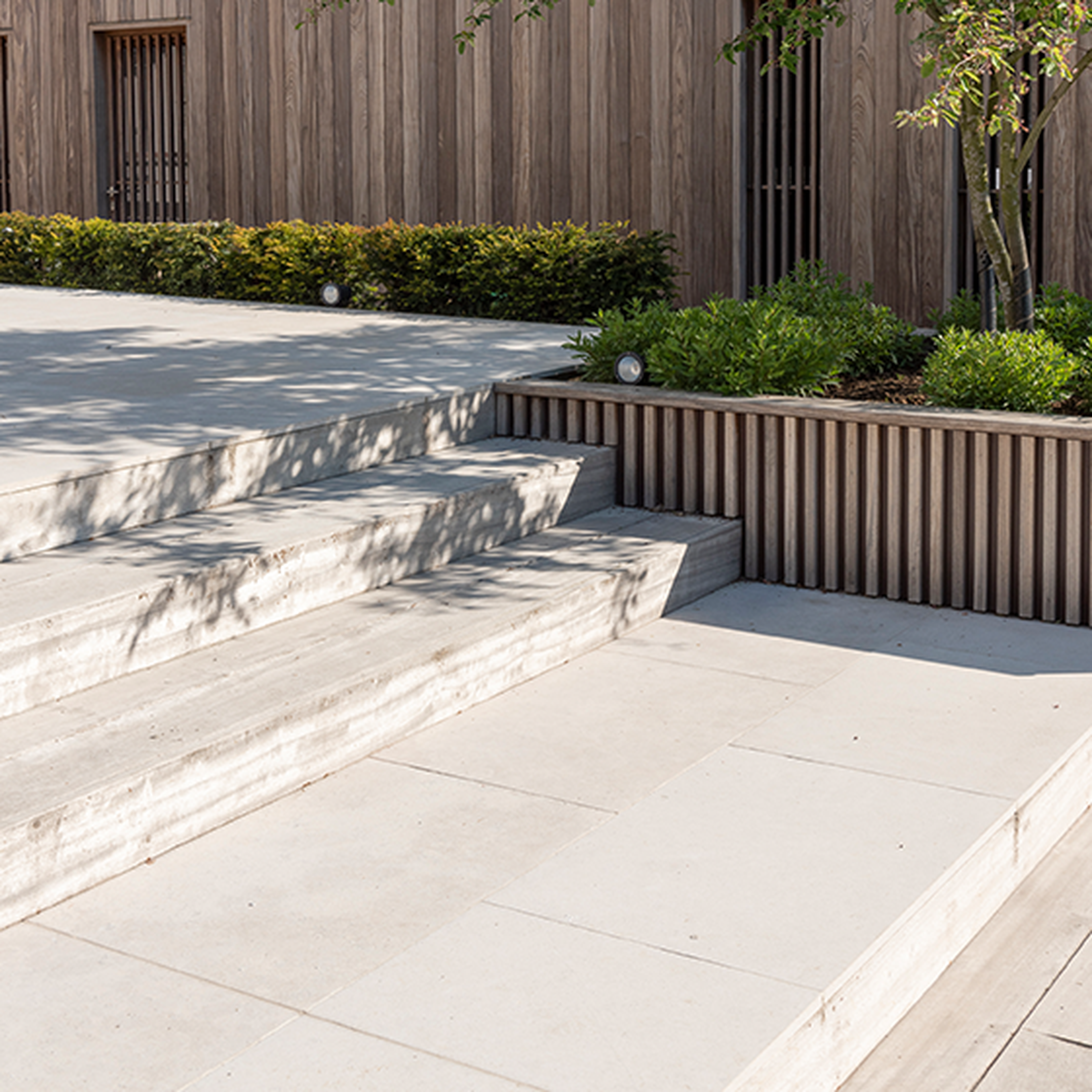 Im Jahr 2024 sehen wir eine wachsende Wertschätzung innovativer Oberflächen, die in unserem eigenen StoneLab entwickelt wurden, wie Arenado, Ruvido, Vieux castel, Vieux bleu belge und Flamewashed. Diese Oberflächen verleihen Oberflächen Textur und Charakter und tragen zum einzigartigen Aussehen von Außenbereichen bei. Sie bieten auch funktionale Vorteile, wie verbesserte Griffigkeit und Witterungsbeständigkeit.