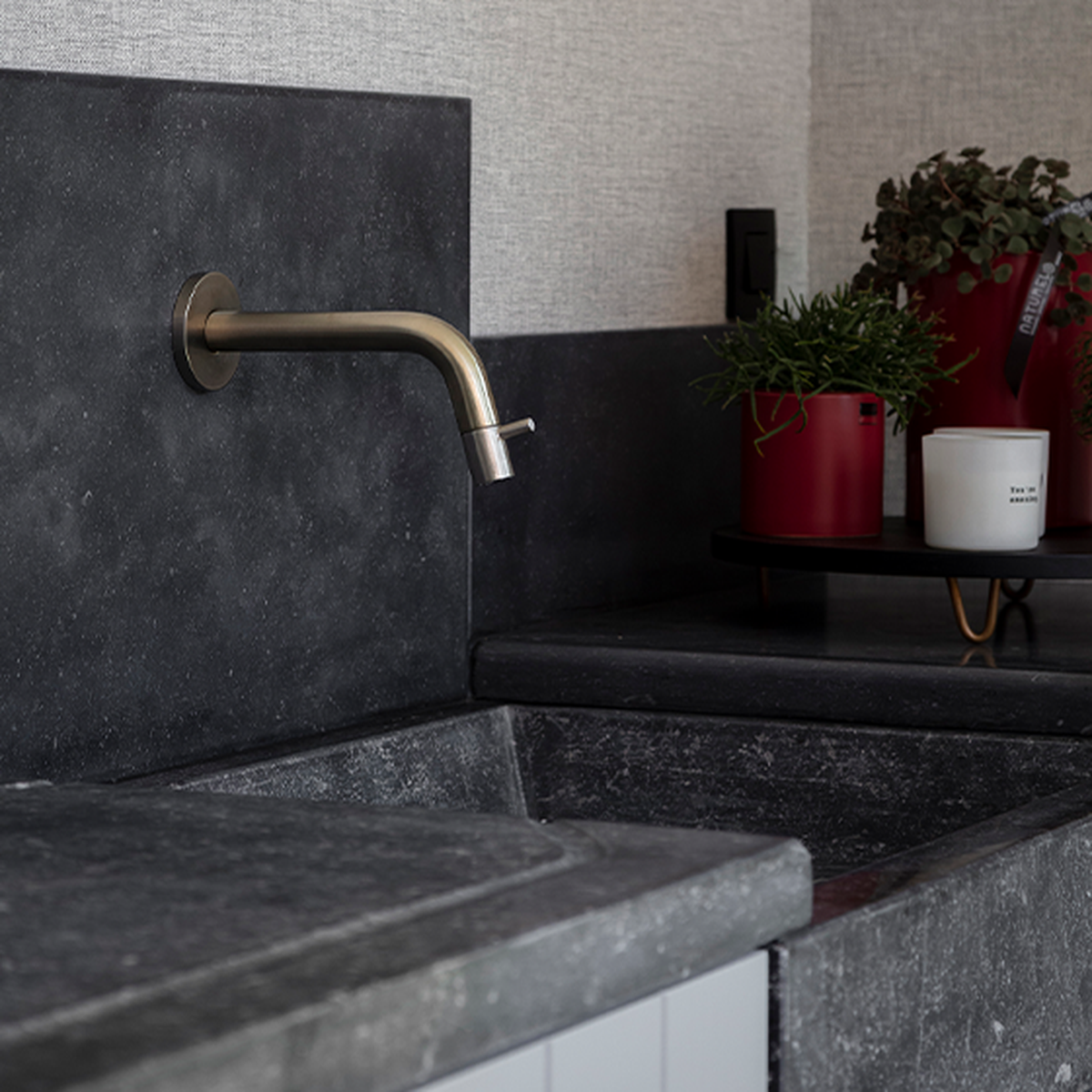 Eine (dunkle) geschliffene Oberfläche wird für den Innenbereich empfohlen, da Kratzer und Flecken darauf weniger sichtbar sind. So können Sie langfristig eine langlebige, charaktervolle und authentische Küchenarbeitsplatte genießen.