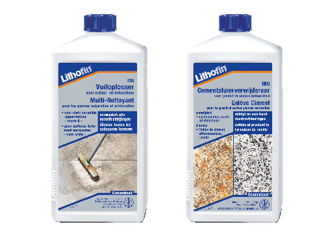 Bei Natursteinböden aus Granit, Schiefer und Basalt hingegen können Sie Lithofin MN Zementschleier- und Rostentferner gebrauchen.