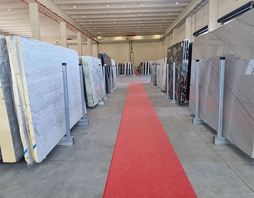 Unsere neue italienische Niederlassung ist nicht nur ein Vertriebszentrum, sondern besteht auch aus einer brandneuen Stone Gallery mit angrenzendem Blockpark. Der absolute Blickfang ist die meterhohe Glaswand, die ein natürliches Licht auf unsere verschiedenen Materialien wirft. Es ist die ideale Gelegenheit, unseren Naturstein für alle Arten von Anwendungen wie Küchen, Bäder, Fußböden, Verkleidungen usw. zu entdecken.