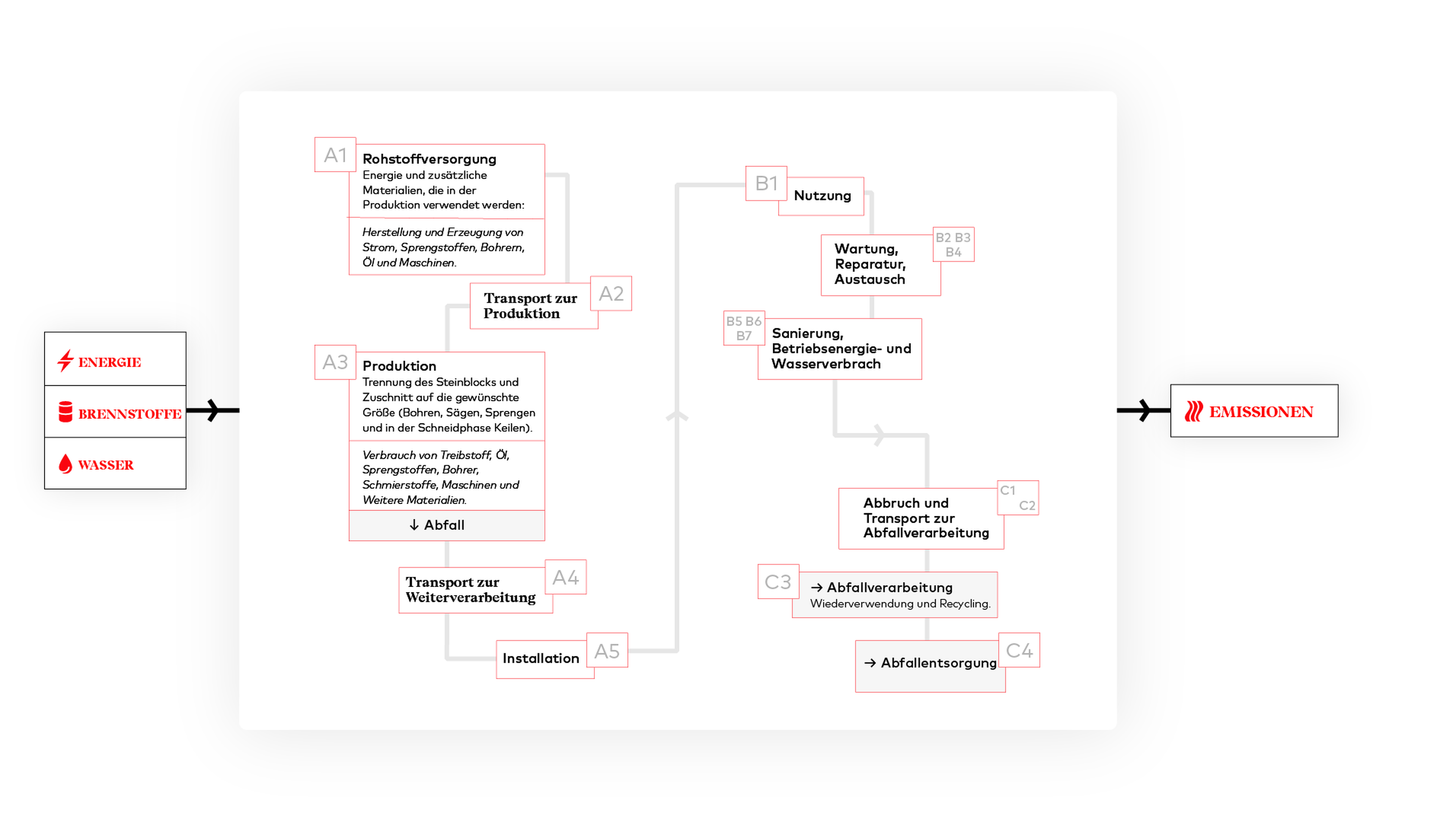 Eine EPD dient als Ausweis für ein Produkt und analysiert jede Phase seines Lebenszyklus – von der Gewinnung von Rohstoffen über die Entsorgung (von der Wiege bis zur Bahre) bis hin zur Wiederverwendung (Recycling oder Down Cycling). Dies gewährleistet eine gründliche Bewertung der Umweltleistung und ermöglicht eine transparente Kommunikation. Durch die Verwendung präziser Indikatoren bietet eine EPD eine objektive Grundlage für den Vergleich der Umweltauswirkungen verschiedener Materialien und ermöglicht es Unternehmen, Architekten und Verbrauchern, fundierte und nachhaltige Entscheidungen zu treffen.