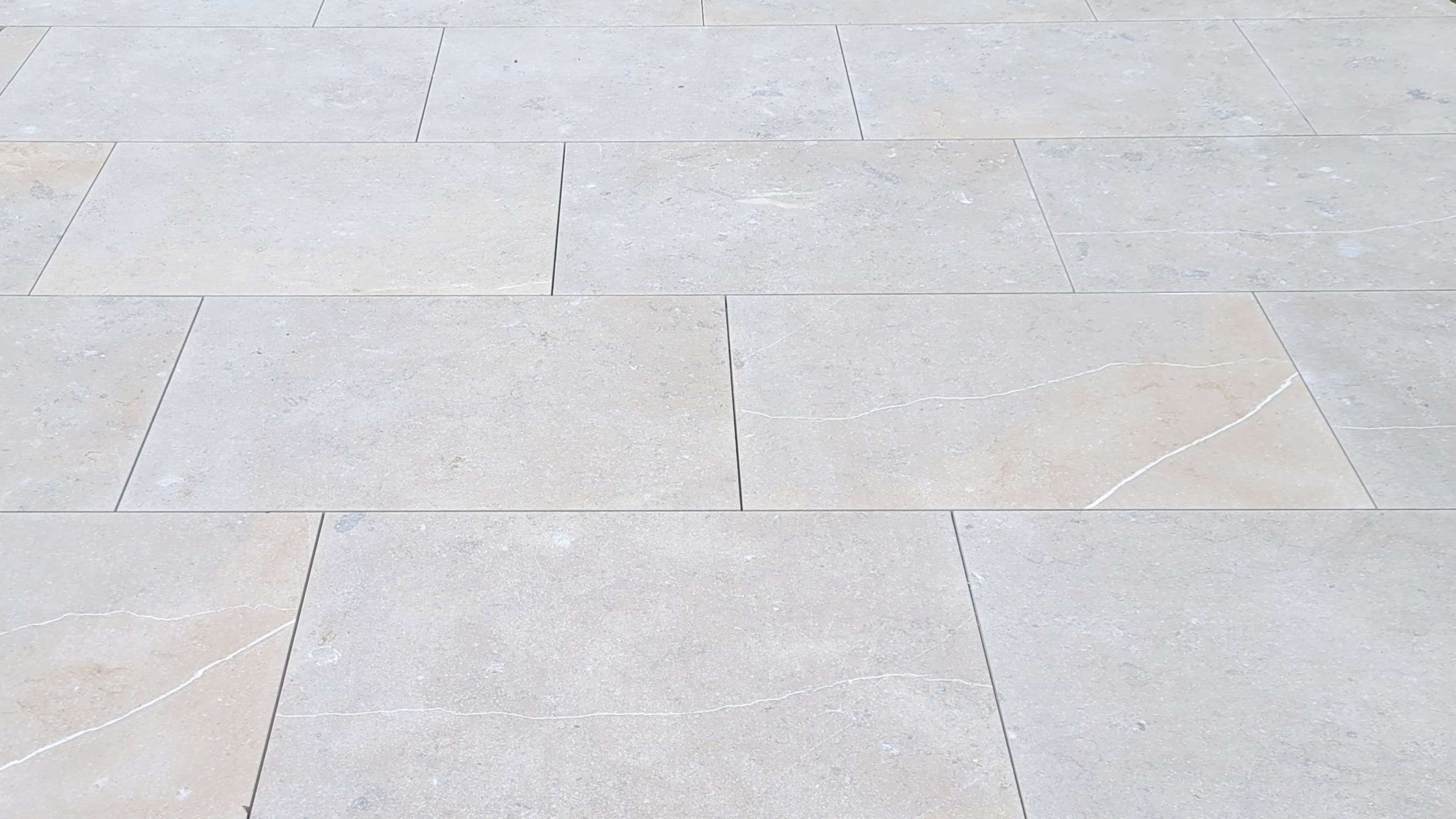 Beschreibung:Beiger, kompakter, feinkörniger Kalkstein mit vereinzelten kleinen Fossilien und/oder Adern und mehr grauen Farbvariationen.