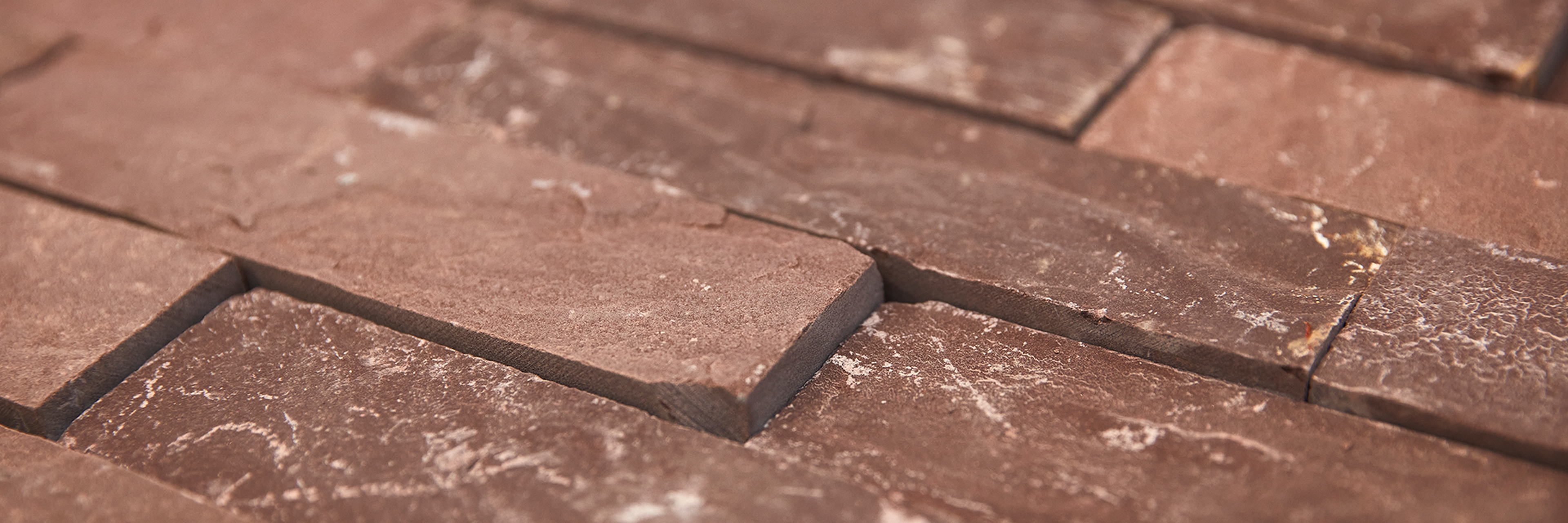 Naturgespalten & getrommelt, gesägte Kanten: Bei bestimmten Natursteinarten sorgt eine naturgespaltene und getrommelte Oberfläche mit gesägten Kanten für einen warmen, natürlichen Ausdruck.