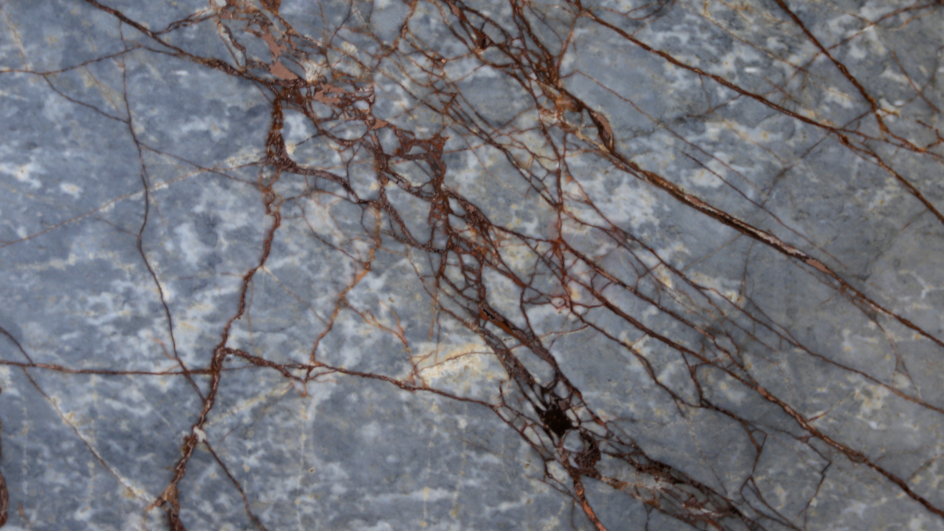 Beschreibung:Graublauer „Marmor“ mit dunkelbraunen, unregelmäßigen Adern auf der Oberfläche.