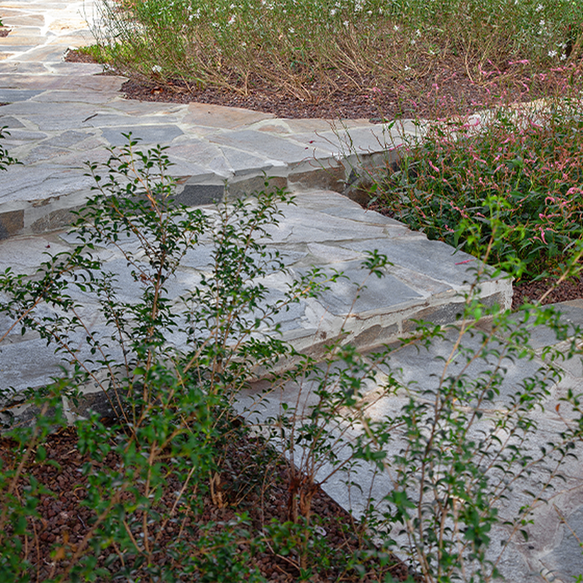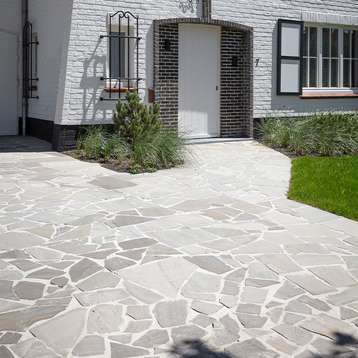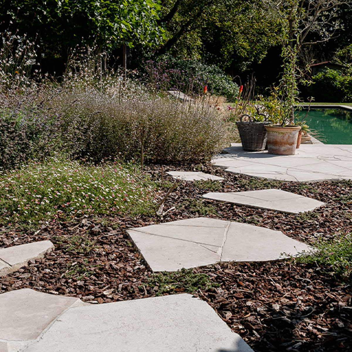 Crazy paving brings an old tradition into a modern setting. Its organic shapes add a natural flow to any garden, creating soft lines that feel both relaxed and contemporary. Because of its irregular forms, it pairs easily with other materials such as pebbles, plants, sleek tiles or concrete. You can choose to edge a path neatly, but the current trend leans towards looser, more organic layouts or even using individual pieces as standalone elements within your outdoor design. This flexibility allows you to create a landscape that feels unique, creative and seamlessly connected to nature.