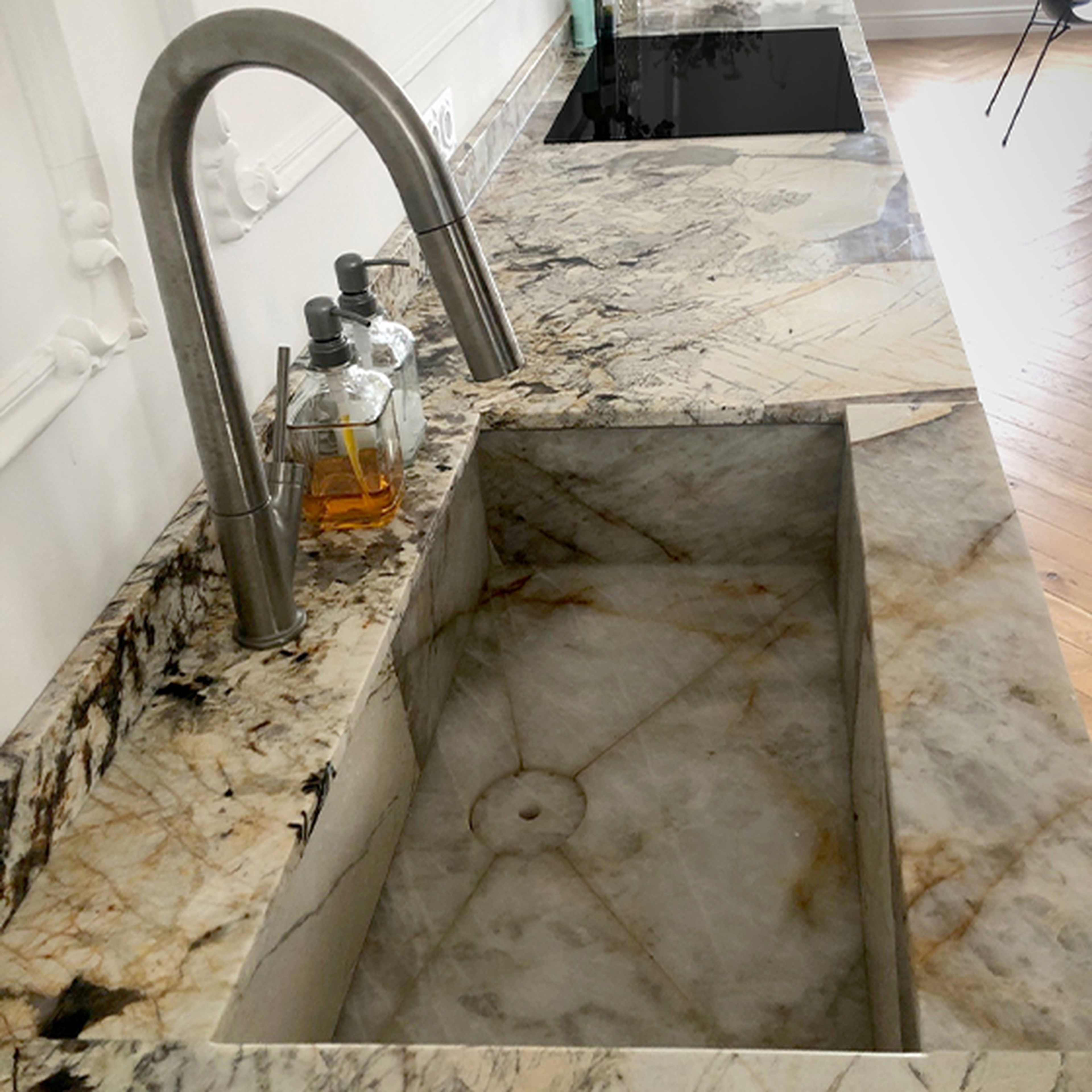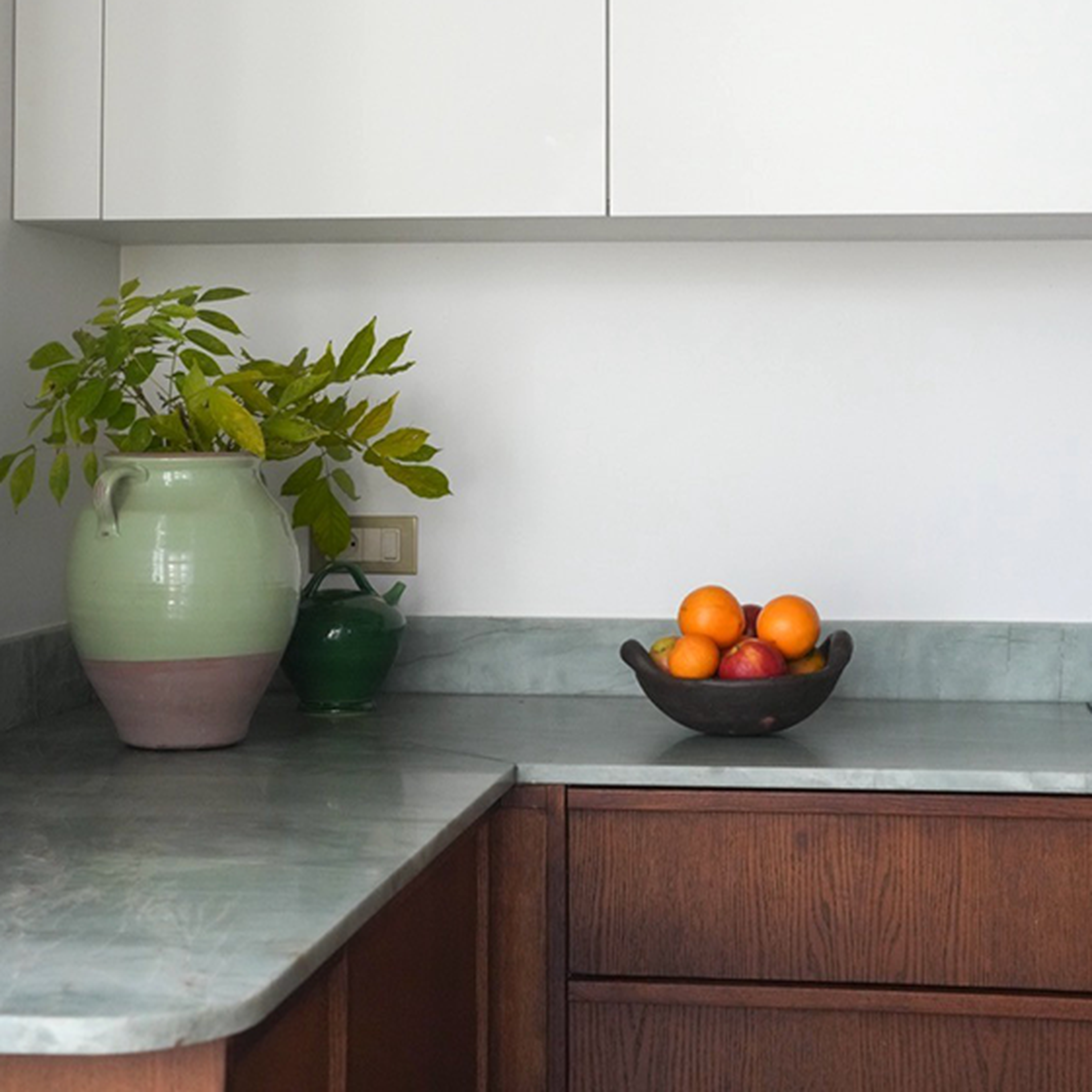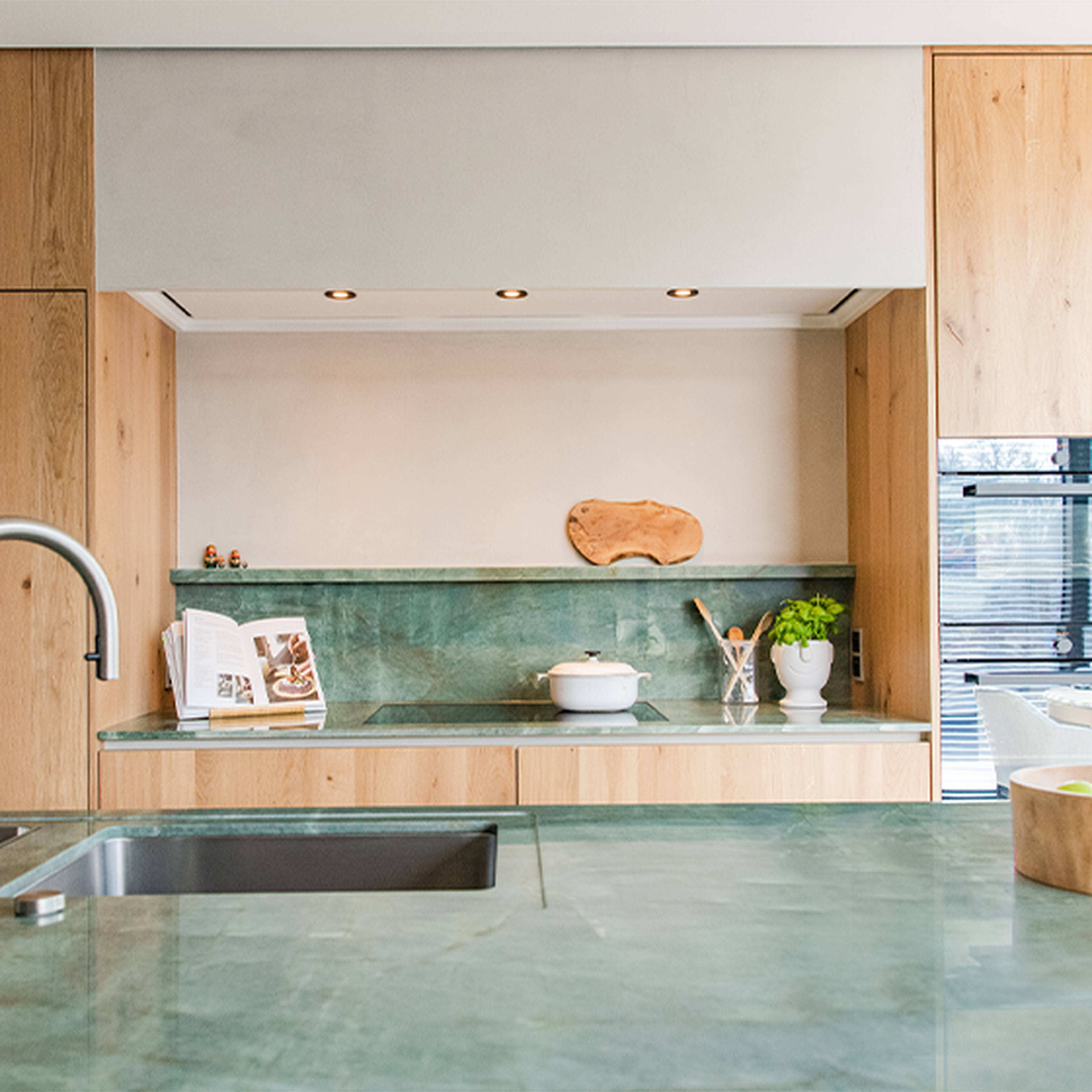 Clean the kitchen worktop regularly with Lithofin MN Power-Clean and then use Lithofin MN Easy-Clean again for daily maintenance.