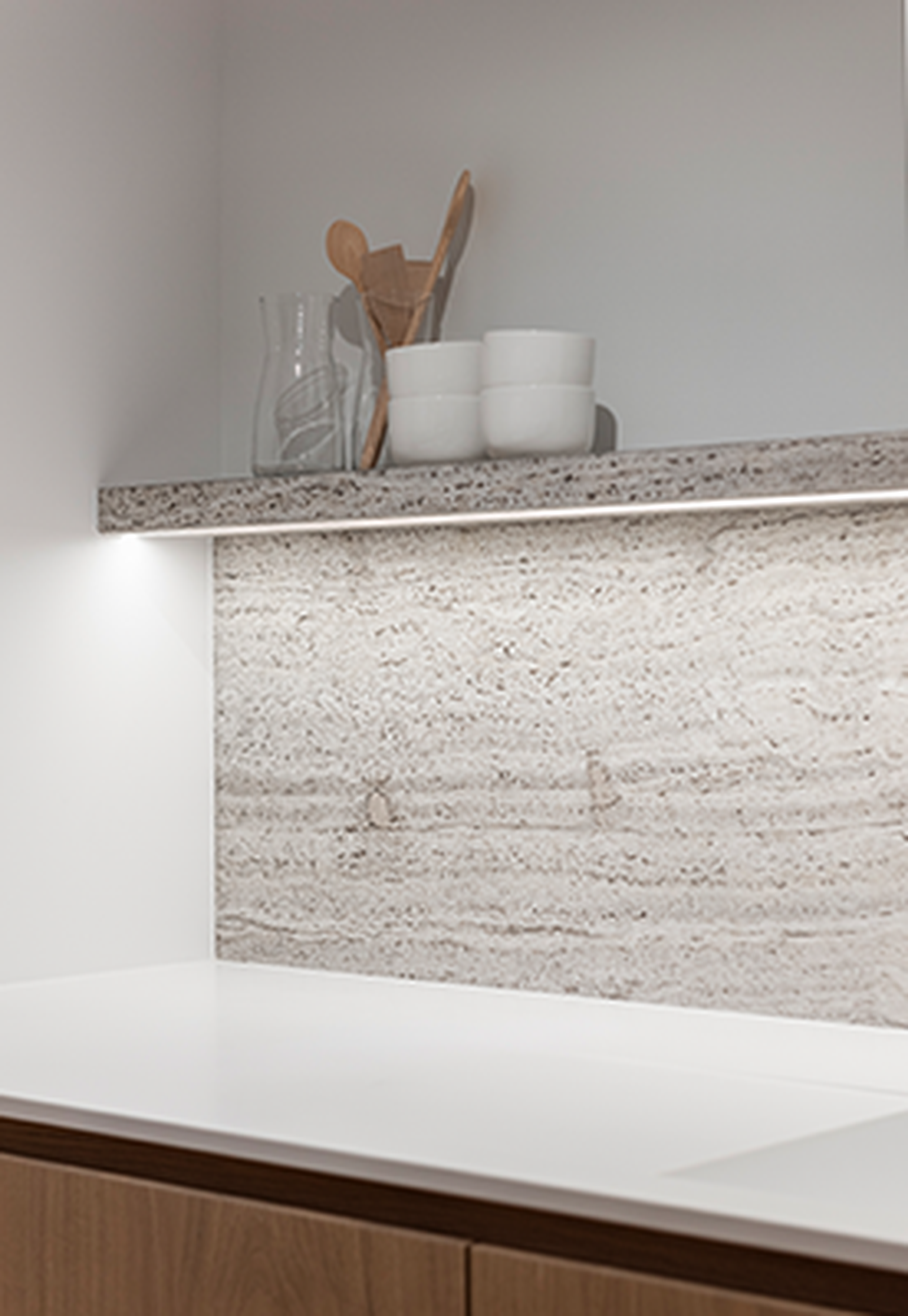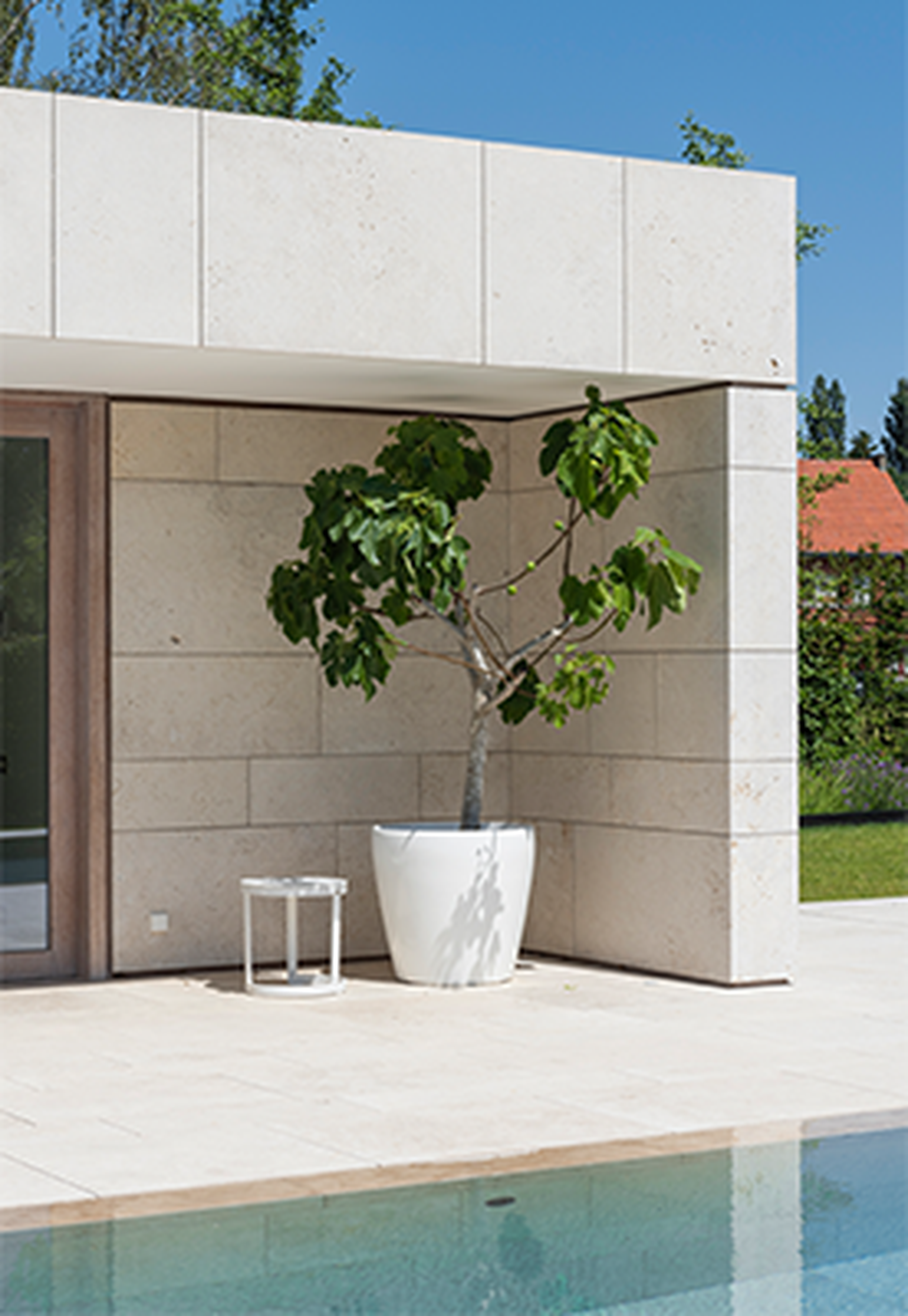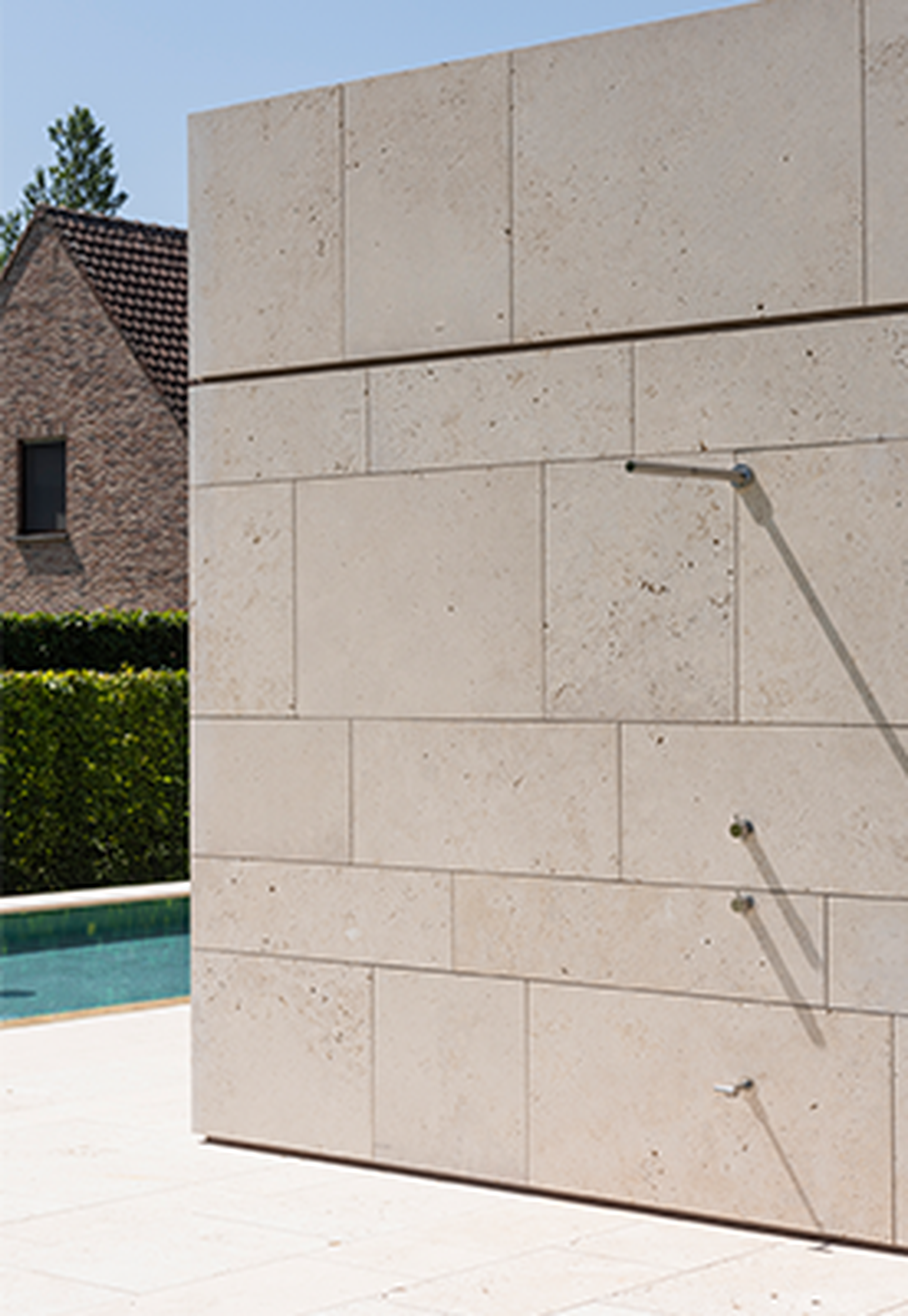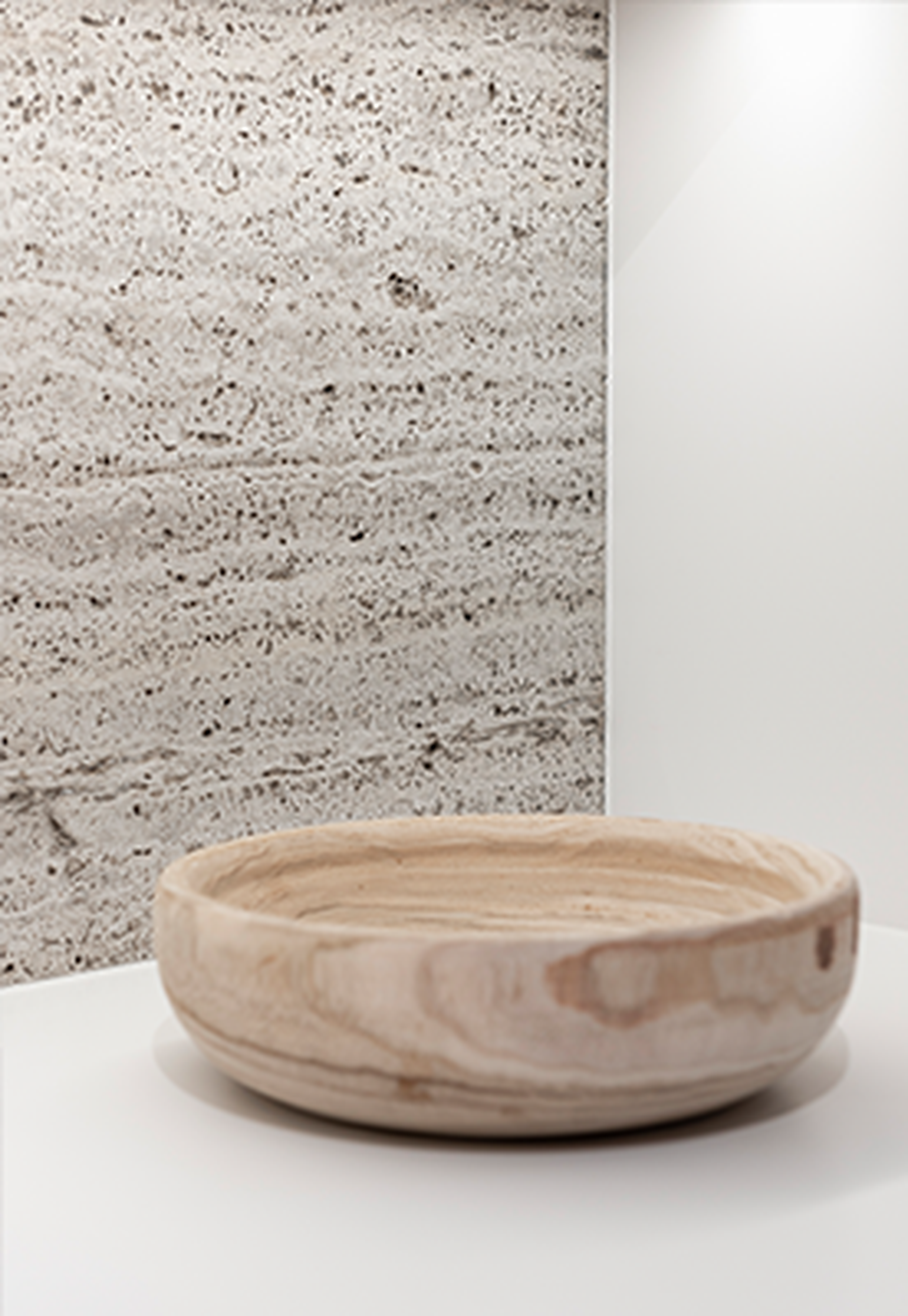 Seemingly imperfect, but with a gentle radiance and a warm color palette, Muschelkalk Mooser remains a bullseye choice for projects with a timeless appeal. Opting for Muschelkalk brings you very close to nature, as fossils of shells, creatures, plants, or corals are interwoven within the stone. This unique structure, combined with the white, beige, and light gray tones, adds a touch of warmth to any interior. The open pores in this fossiliferous limestone can be filled. Brachot sets itself apart in the market by offering this material in various finishes, specifically developed in the Stone Lab of Brachot Harelbeke.