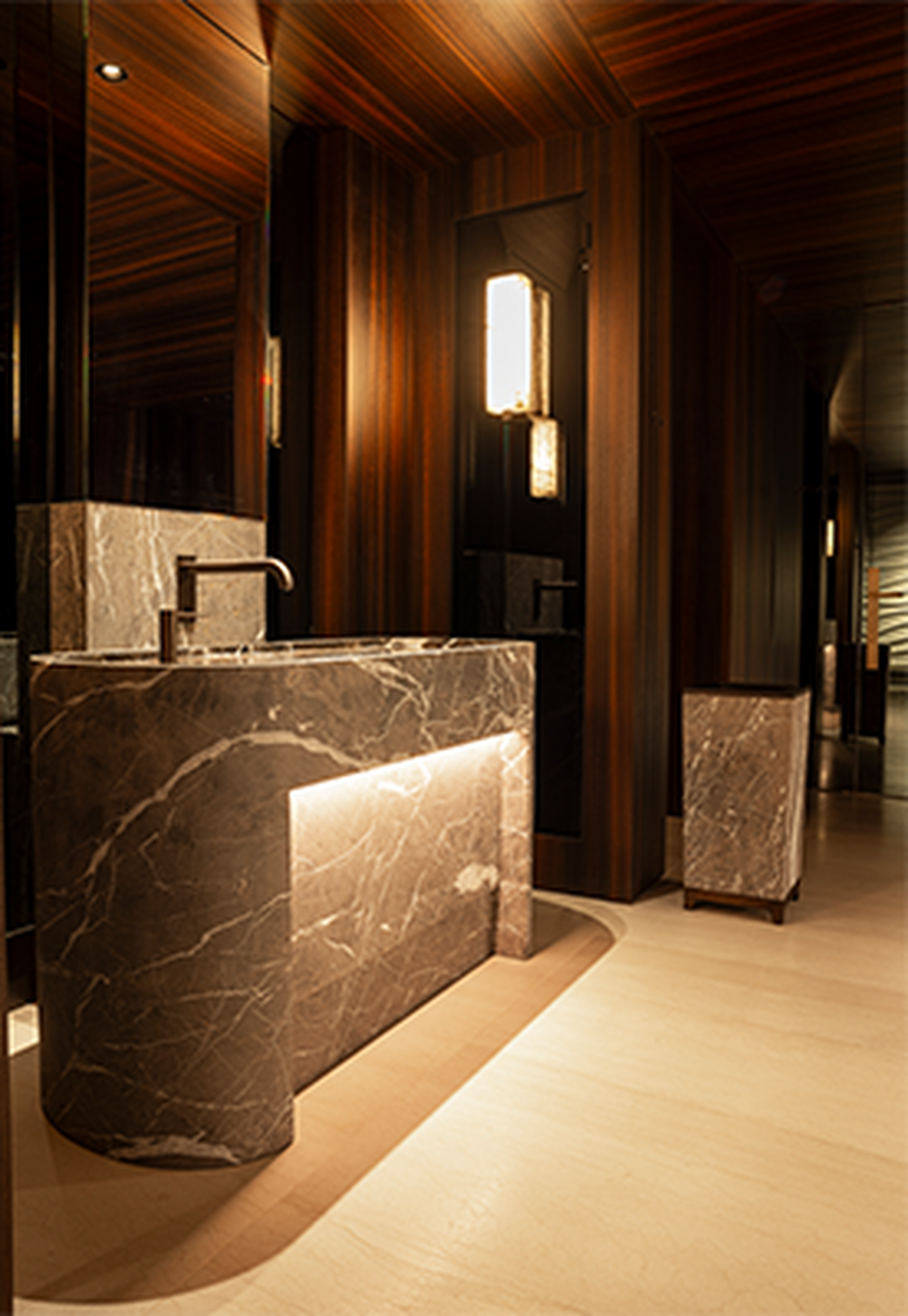 This extraordinary type of stone is also used in the renovation of the prestigious La Réserve Hotel in Knokke (BE), in a sandblasted and brushed finish. The horizontal line structure of Tesoro Veneziano makes the natural stone even more unique! As you stroll through the enchanting halls, corridors, and terraces of La Réserve, be sure to take the time to unravel the secret of Tesoro Veneziano in its various applications. In La Réserve as well, Tesoro Veneziano lays the foundation for enchanting beauty.