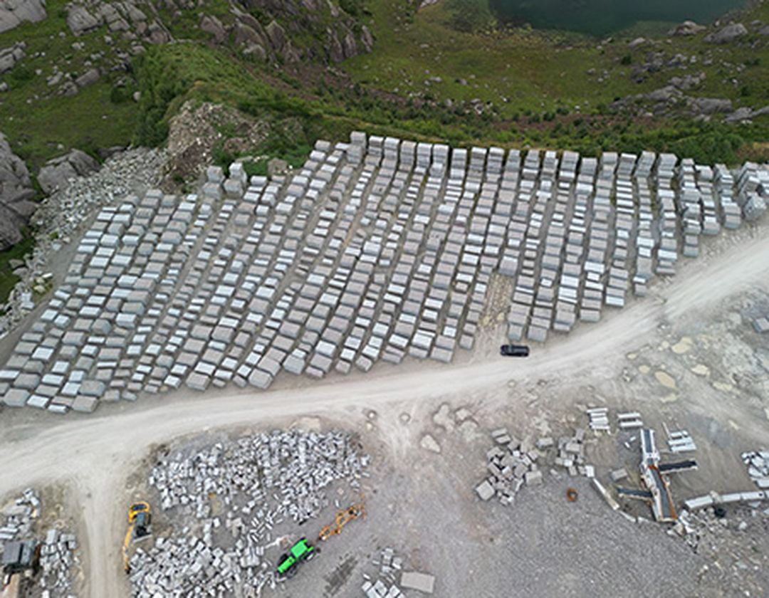 All quarrying and processing operations follow strict environmental and legislative protocols. Dust and noise levels are actively monitored and controlled on every site. Water management is handled through a closed-loop recirculation system. Water used in wire-cutting is collected, filtered and reused rather than discharged. Environmental Product Declarations (EPDs) are also available for our materials, providing transparent insight into their environmental performance.