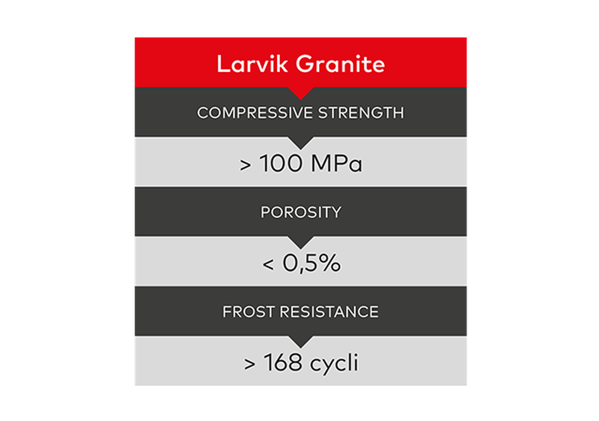 Every block extracted at Larvik Granite is individually registered and subject to a structured quality control process. Dedicated on-site teams assess each block against strict dimensional and material standards before it leaves the quarry. That consistency at source is what makes it possible to apply demanding surface treatments with reliable, repeatable results.