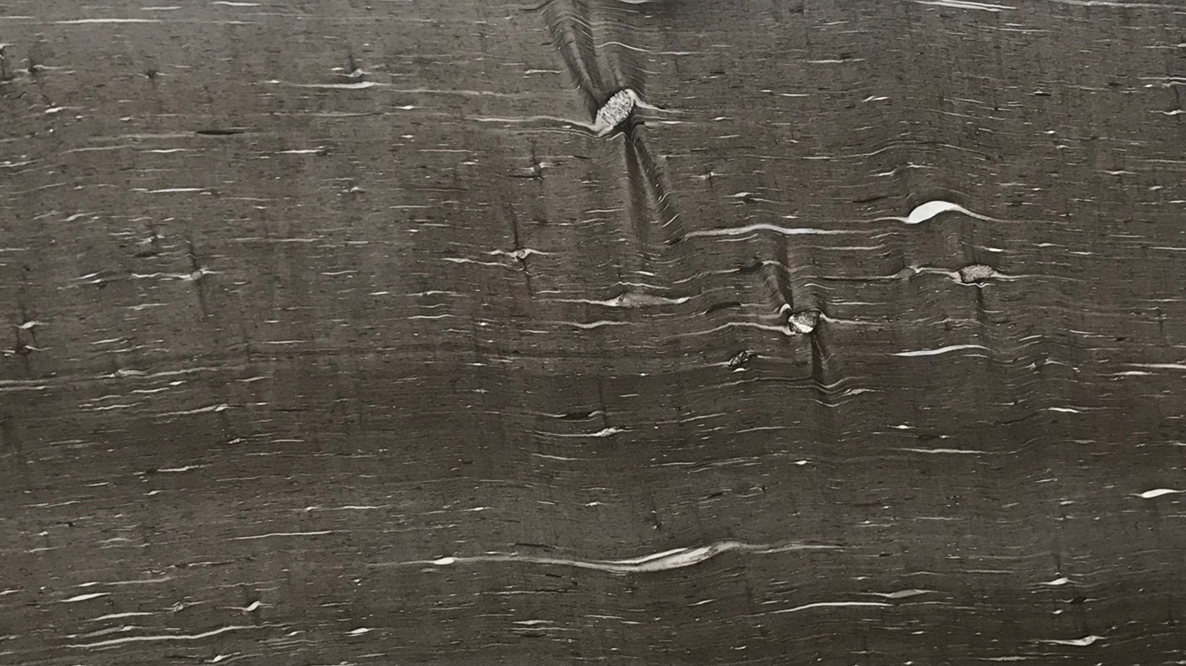 Description:Granite with a predominantly brown colour in which white and black wave-shaped minerals occur.