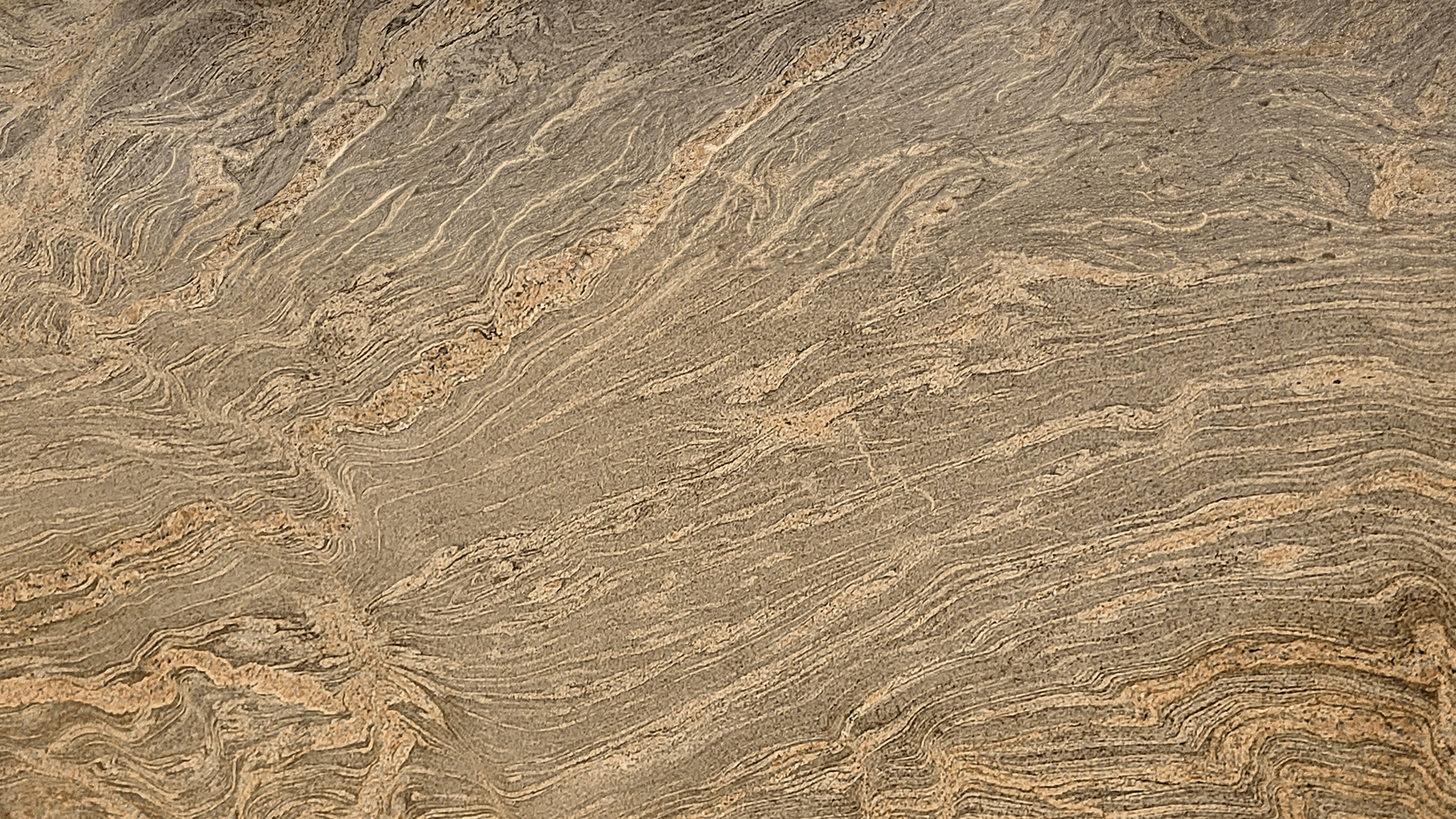 Description:Pink-beige-grey, medium coarse-grained "granite" with a heterogeneous structure due to black veins and mineral concentrations.