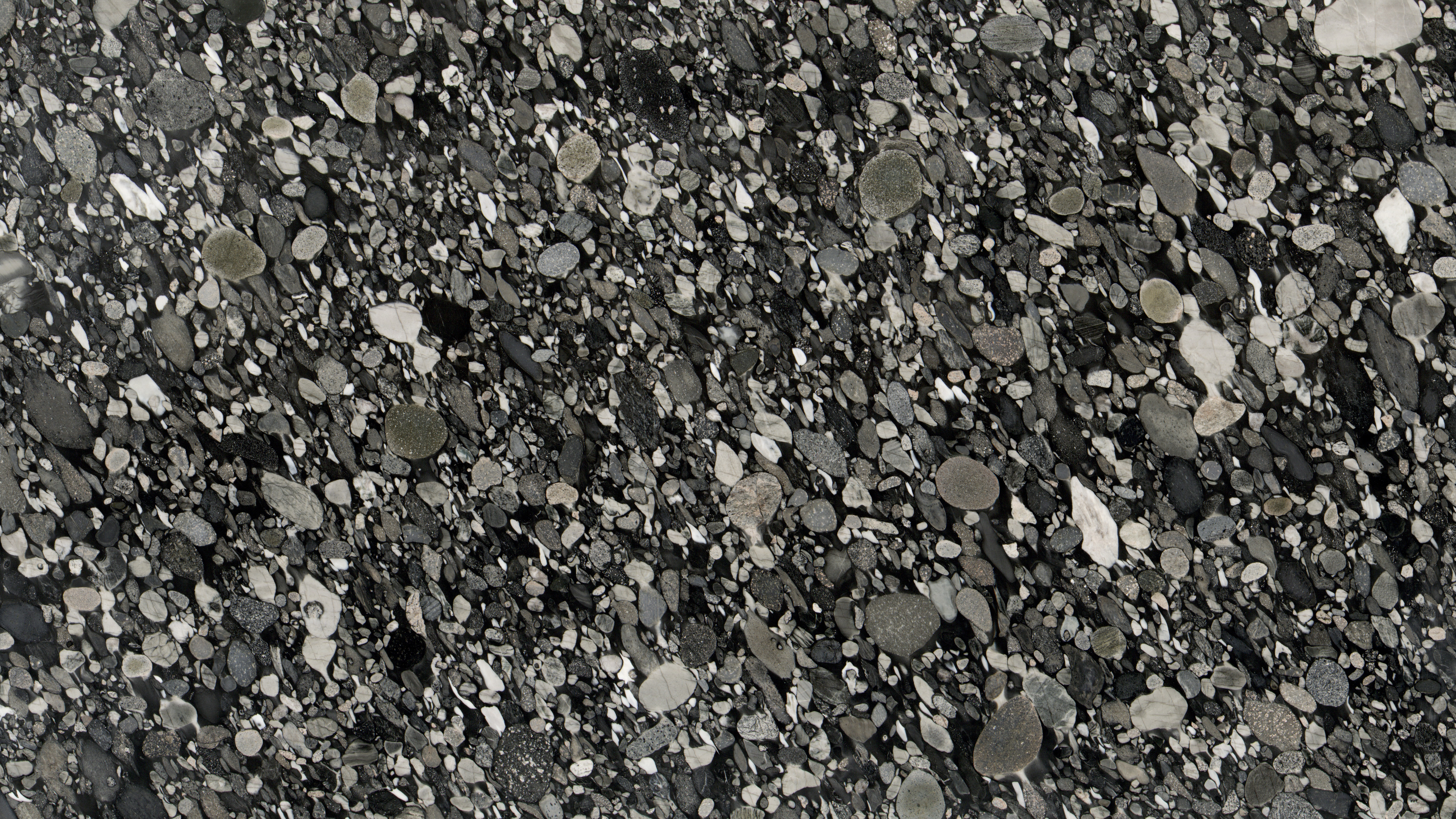 Description:This black conglomerate shows large rounded fragments in different colours (mainly grey and white), in a predominantly black matrix. The rounded rock fragments can be up to 15 cm in size. Very heterogeneous composition.