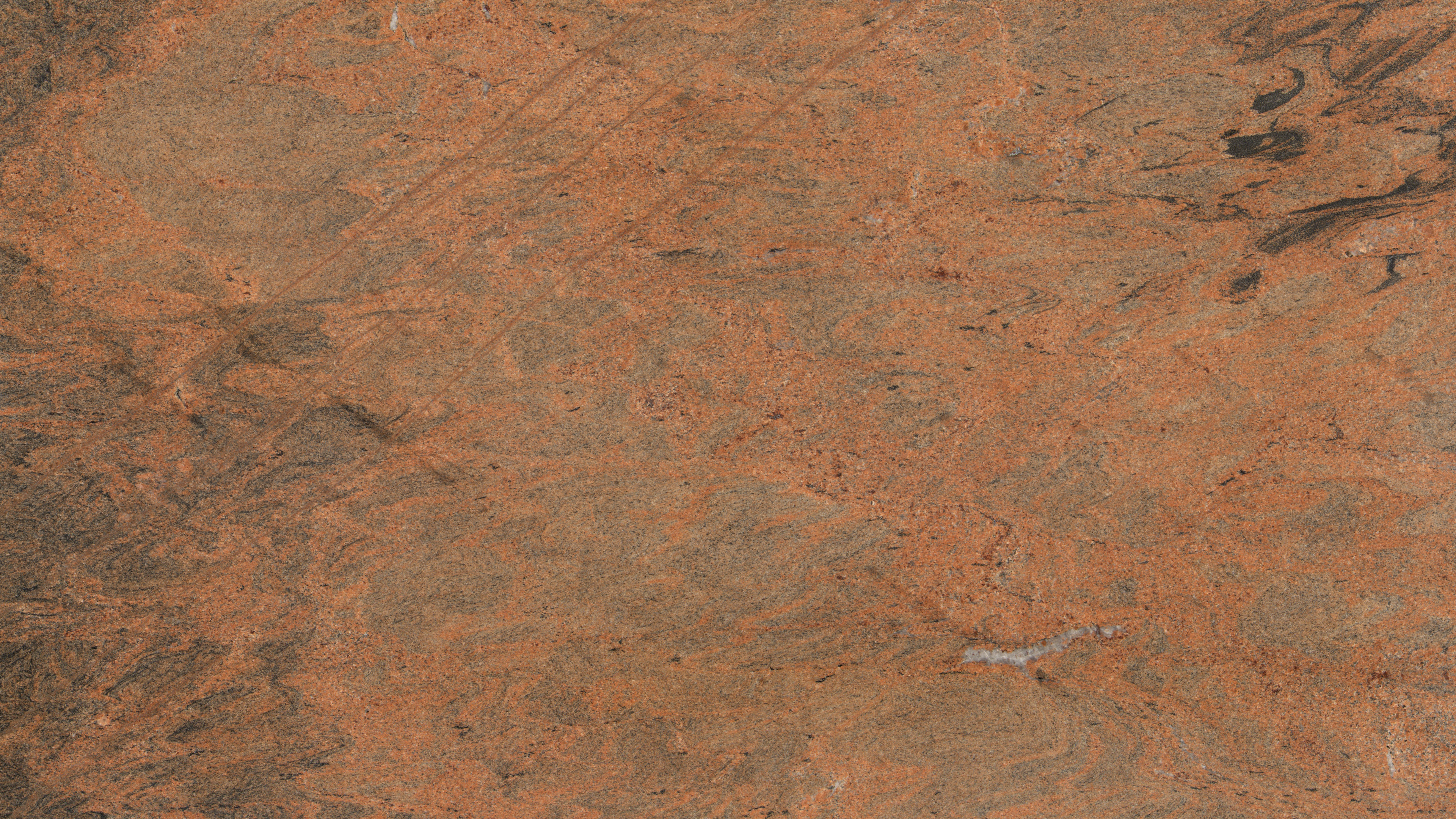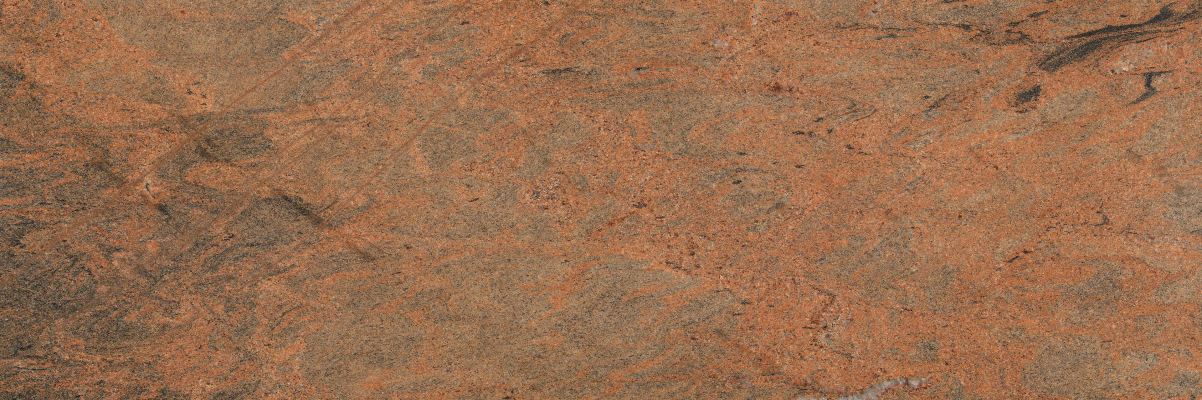 Description:Orange-reddish, medium coarse-grained granite with black veins / concentrations that give the material a typical heterogeneous, band-shaped structure.