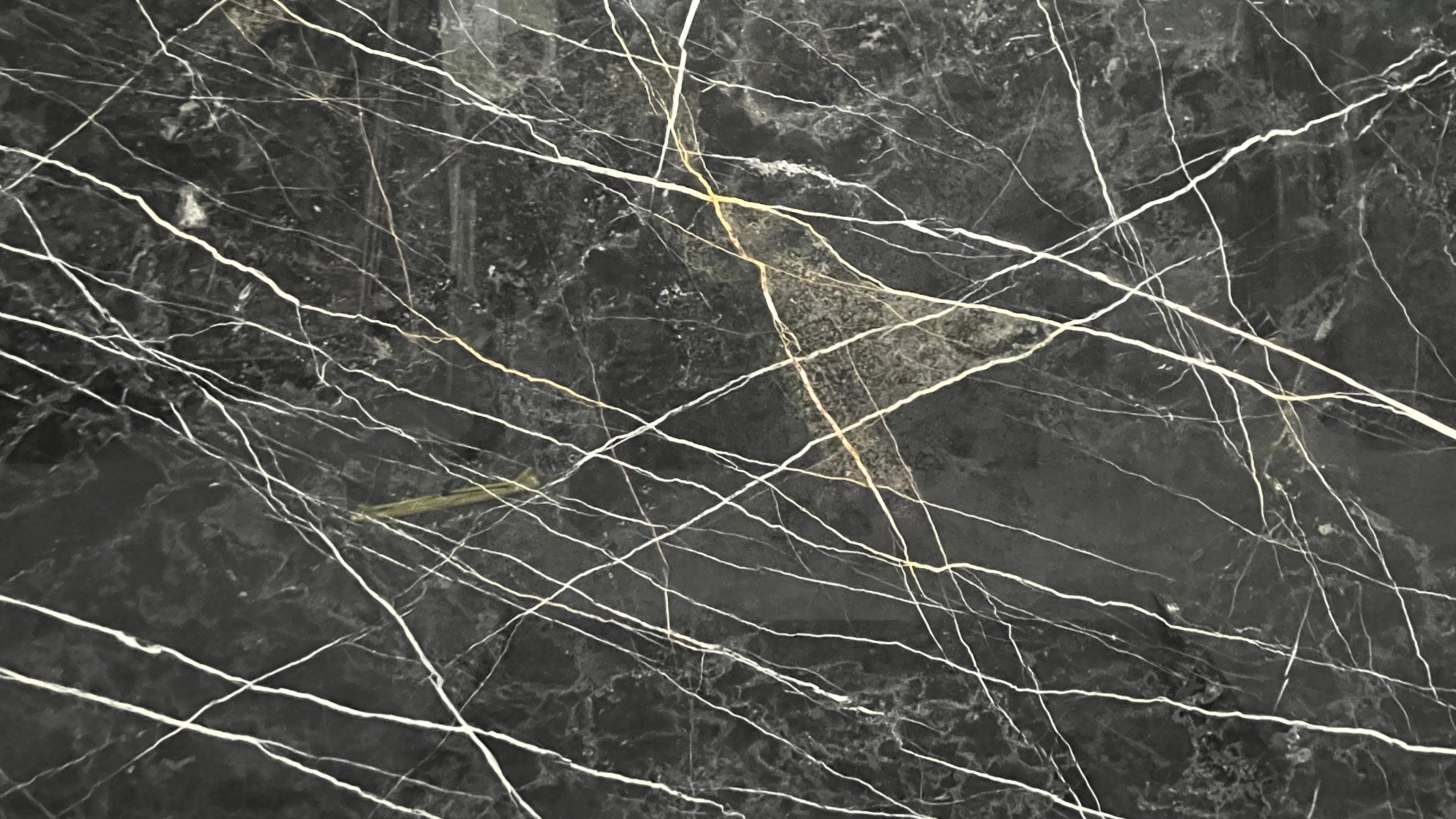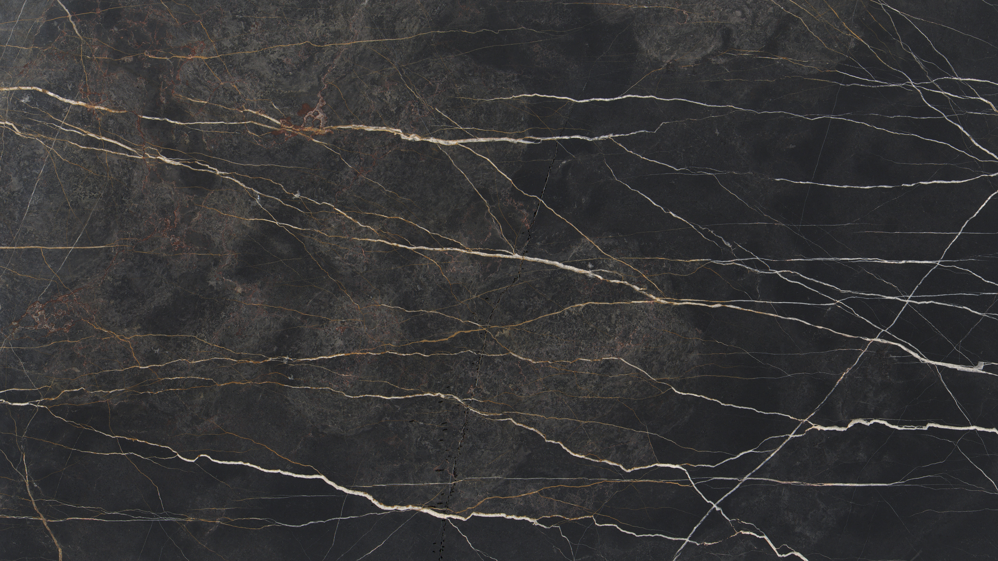 Description:Fine-grained compact limestone with a brown-black colour with golden yellow and white veins.