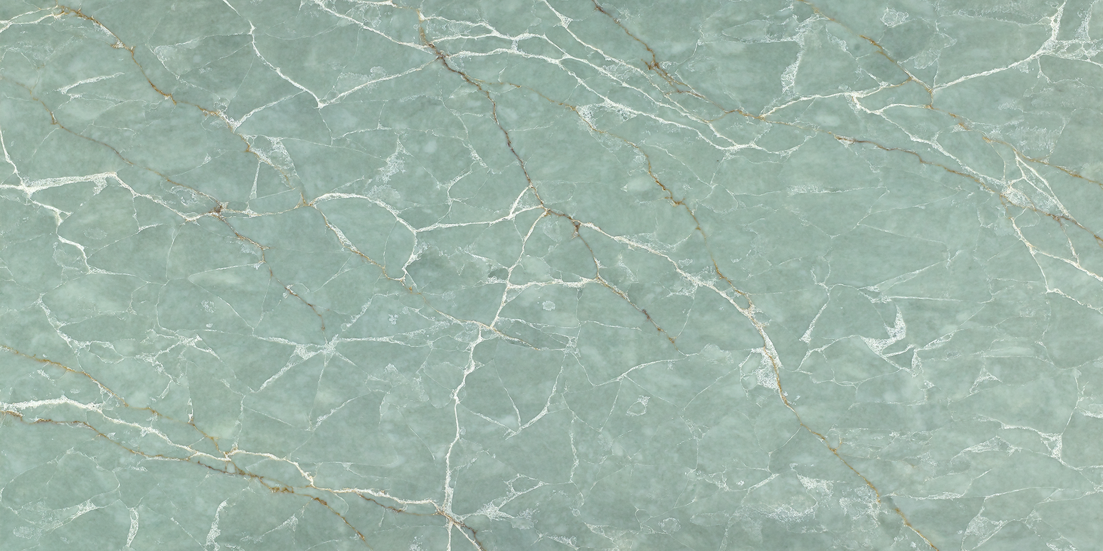 Description:Fine-grained pale green quartz compound stone with white and darker veins spread across the surface (composed of silicium and quartz with polyester-resin as a binder).