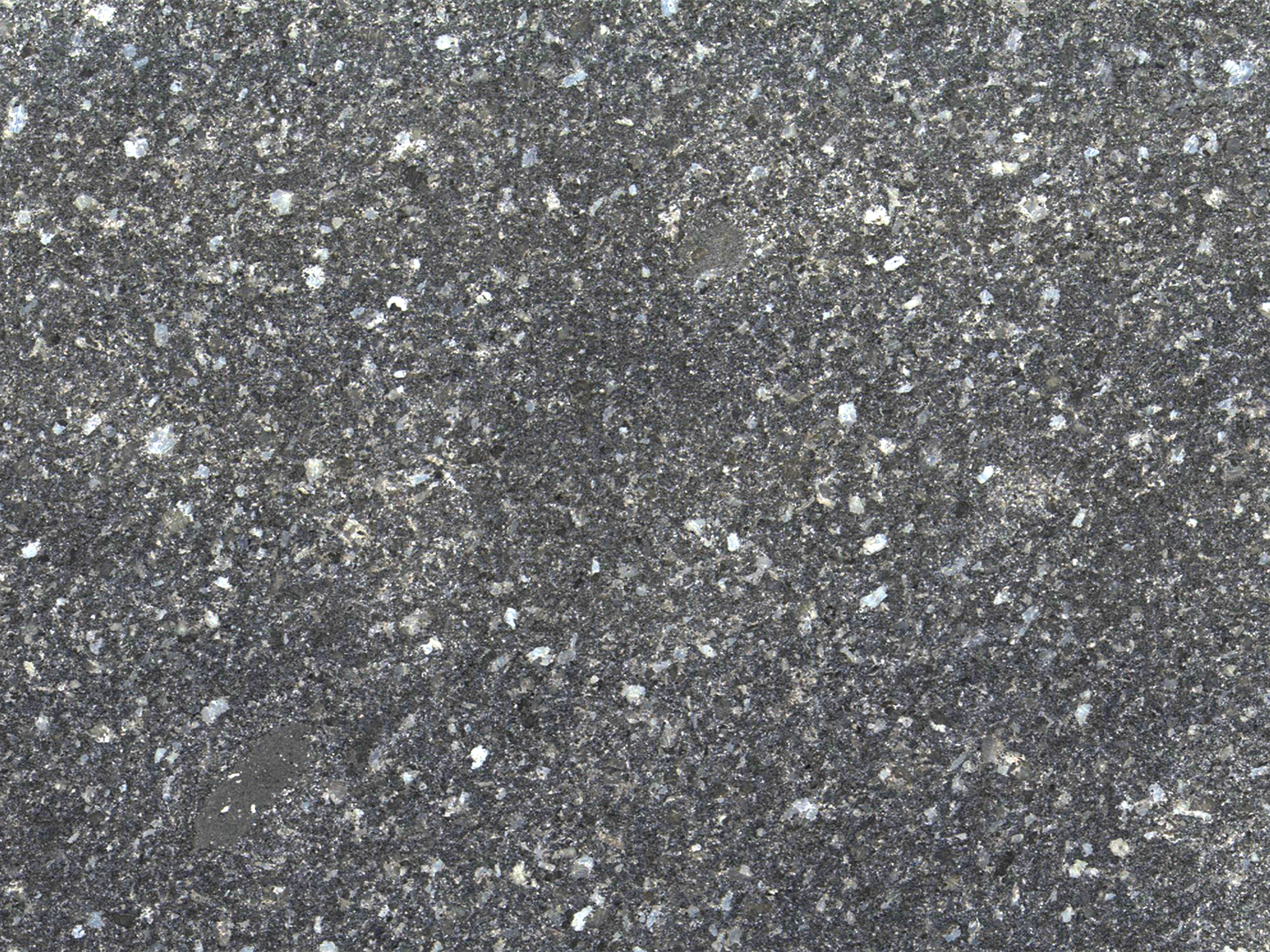 Description:Dark grey granite with larger dark grey to black, reflecting minerals spread over the surface.