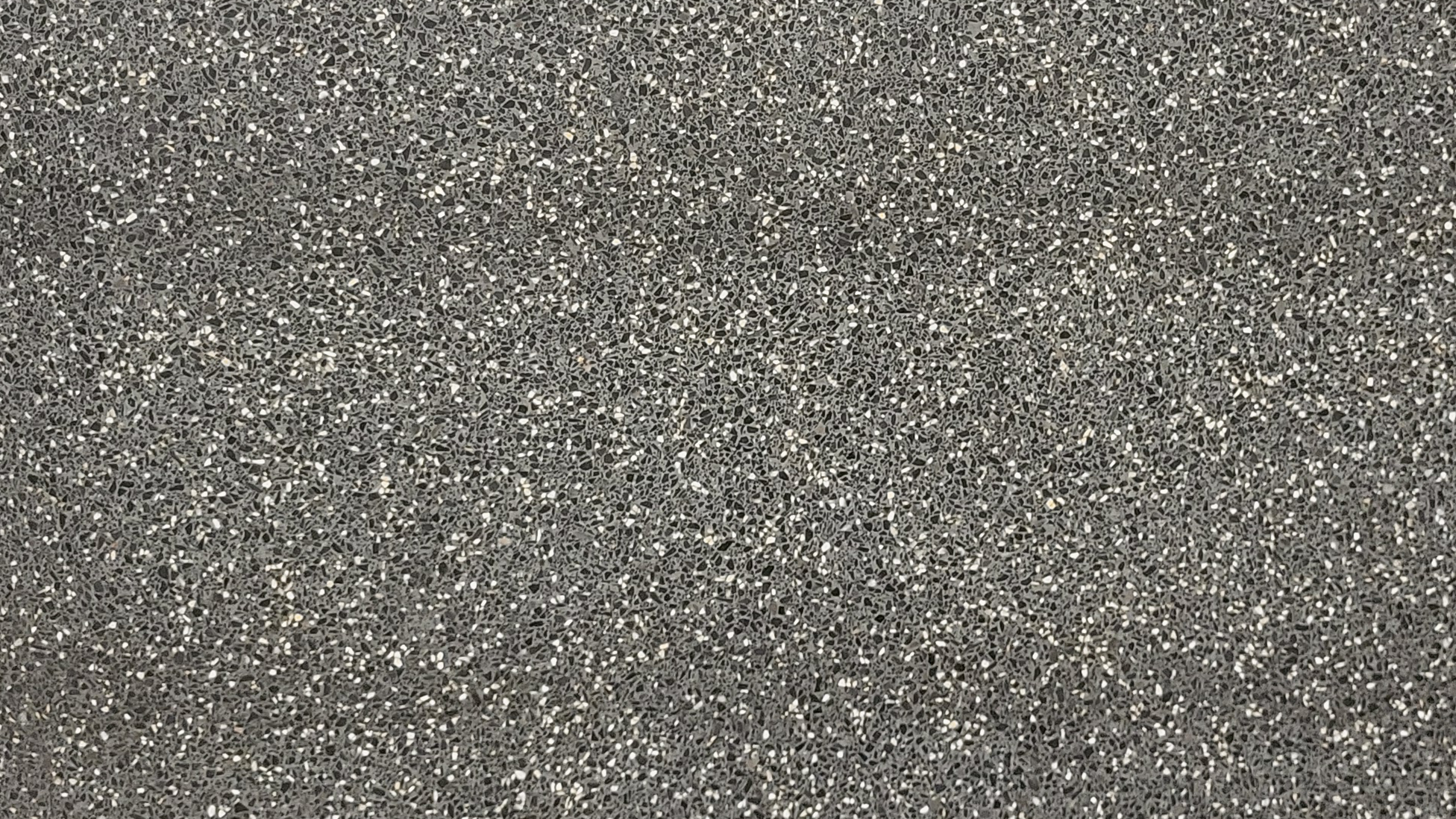Description:Terrazzo composed of marble aggregates, cement and color pigments in different proportions. Dark grey base colour with coarser grained white-beige to black marble fragments.