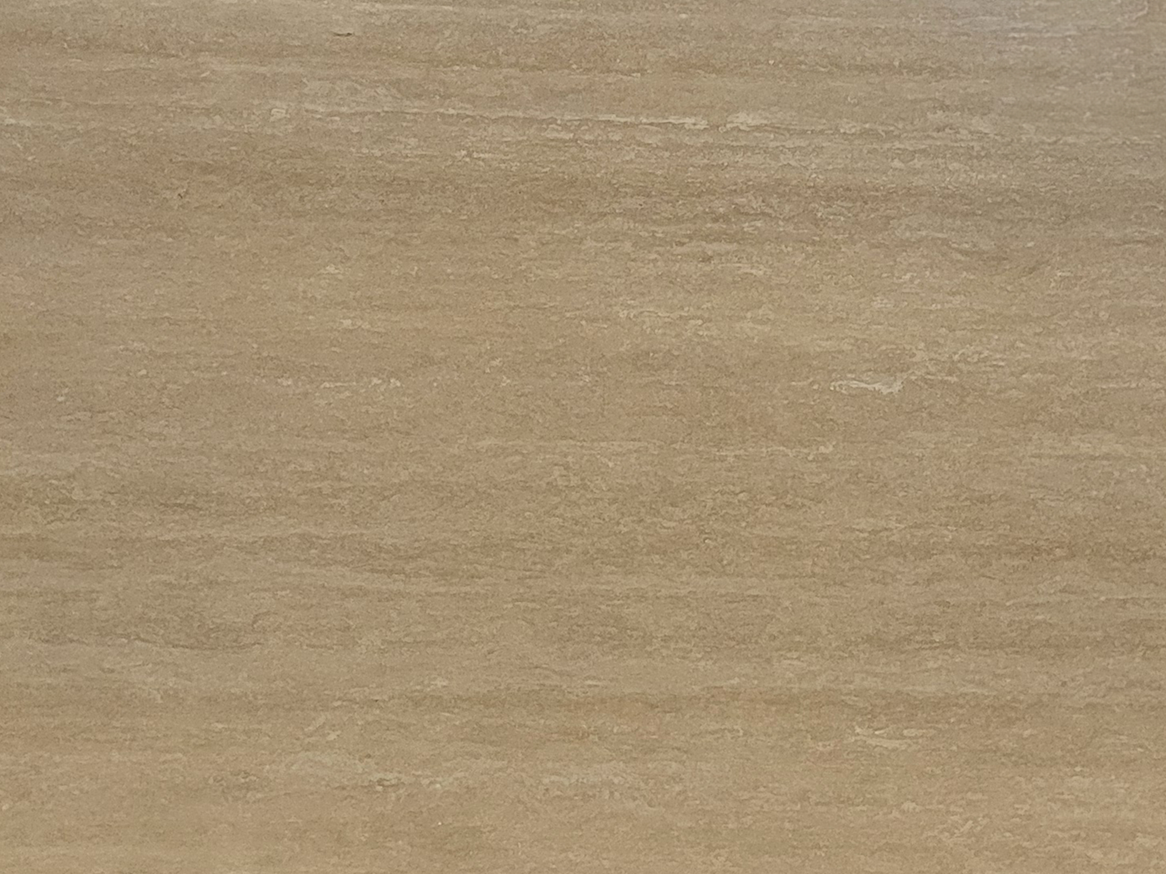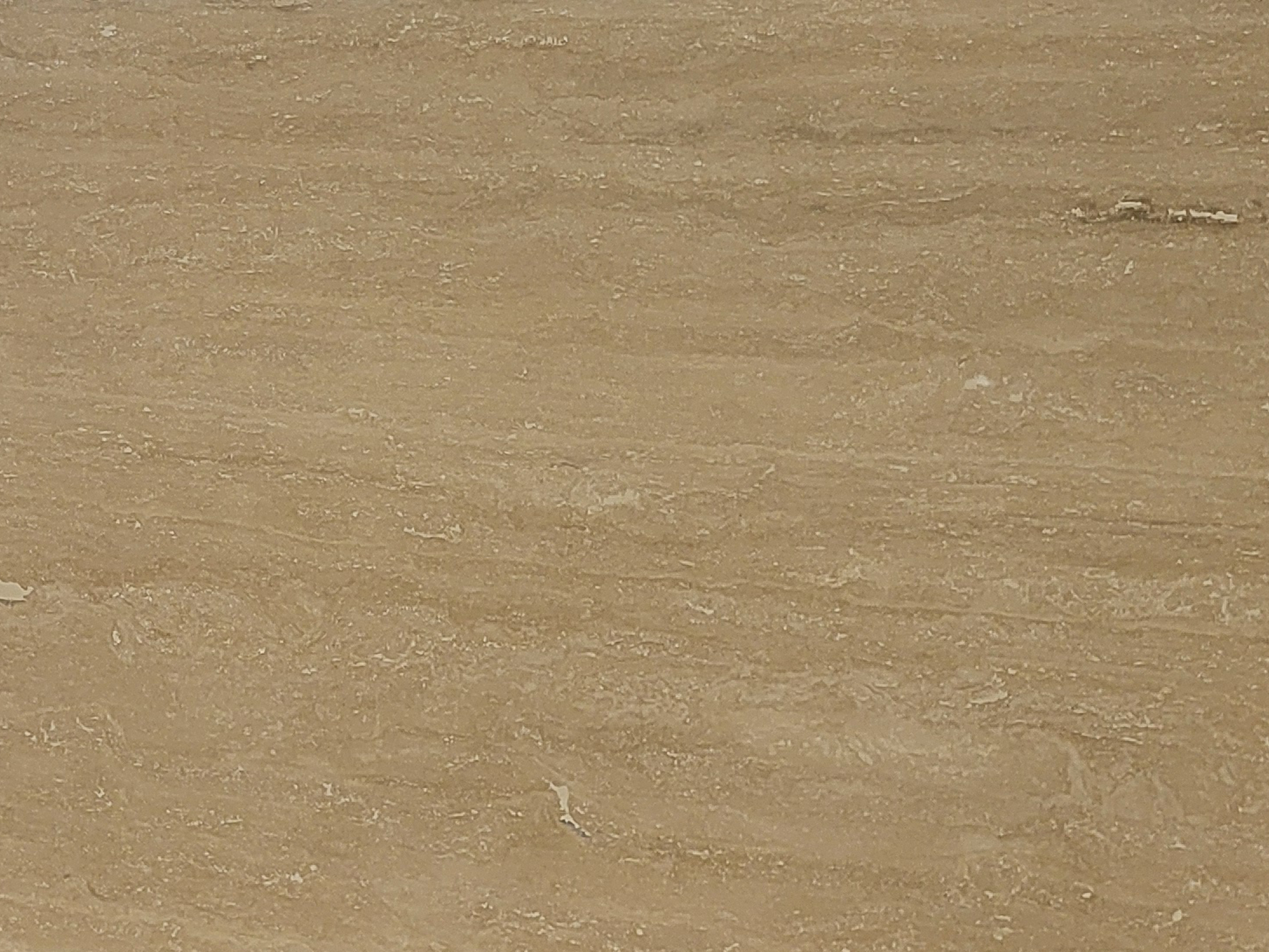 Description:Beige compact limestone (travertine) with pronounced lined drawing. The drawing is very heterogeneous and mainly band-shaped (horizontal and parallel; sawn perpendicular to layering). The surface contains small openings that are filled or not filled depending on demand.