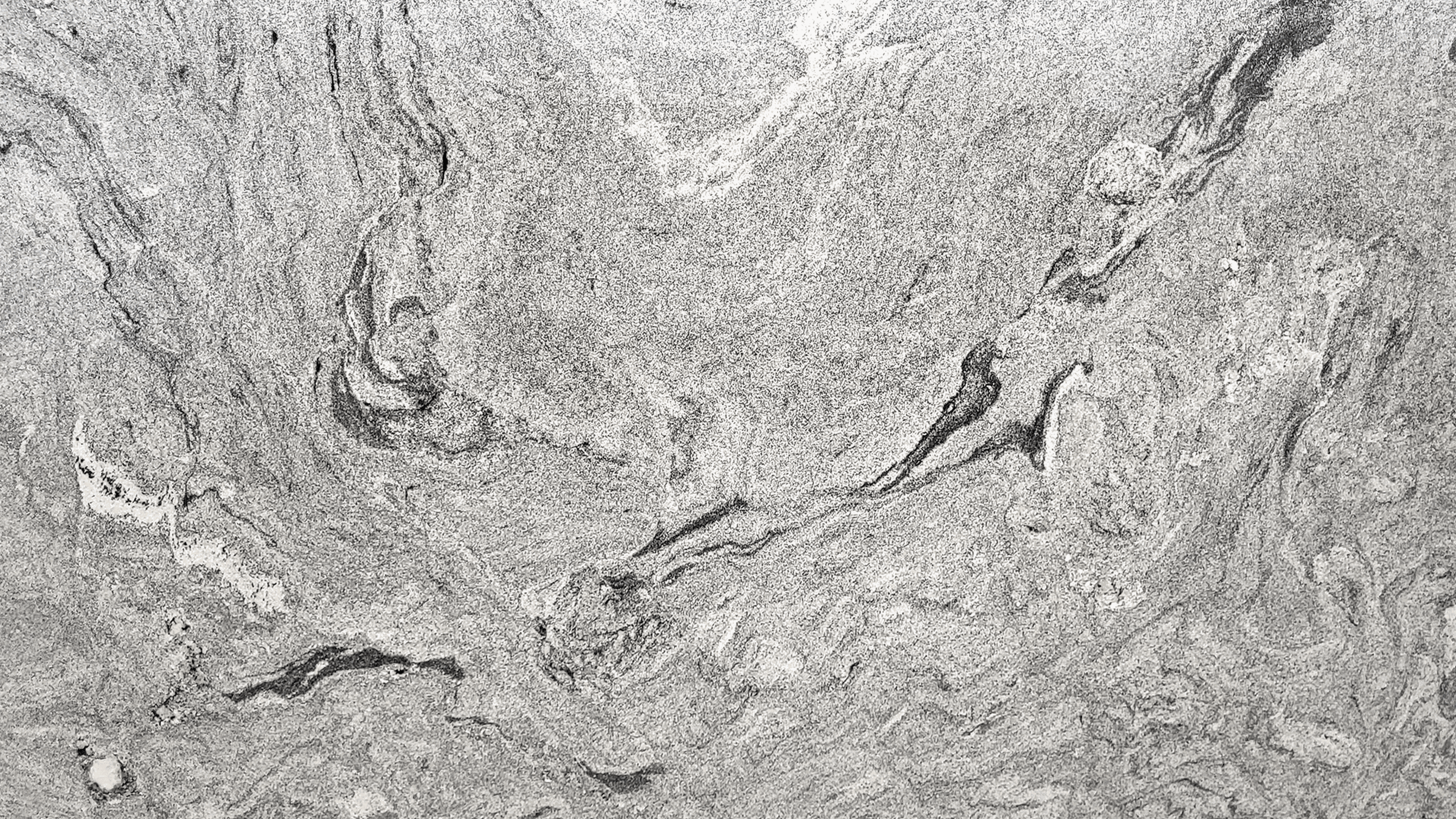 Description:White granite with medium grain size, veins and typical black mineral concentrations. Heterogeneous structure with black bands/veins.
