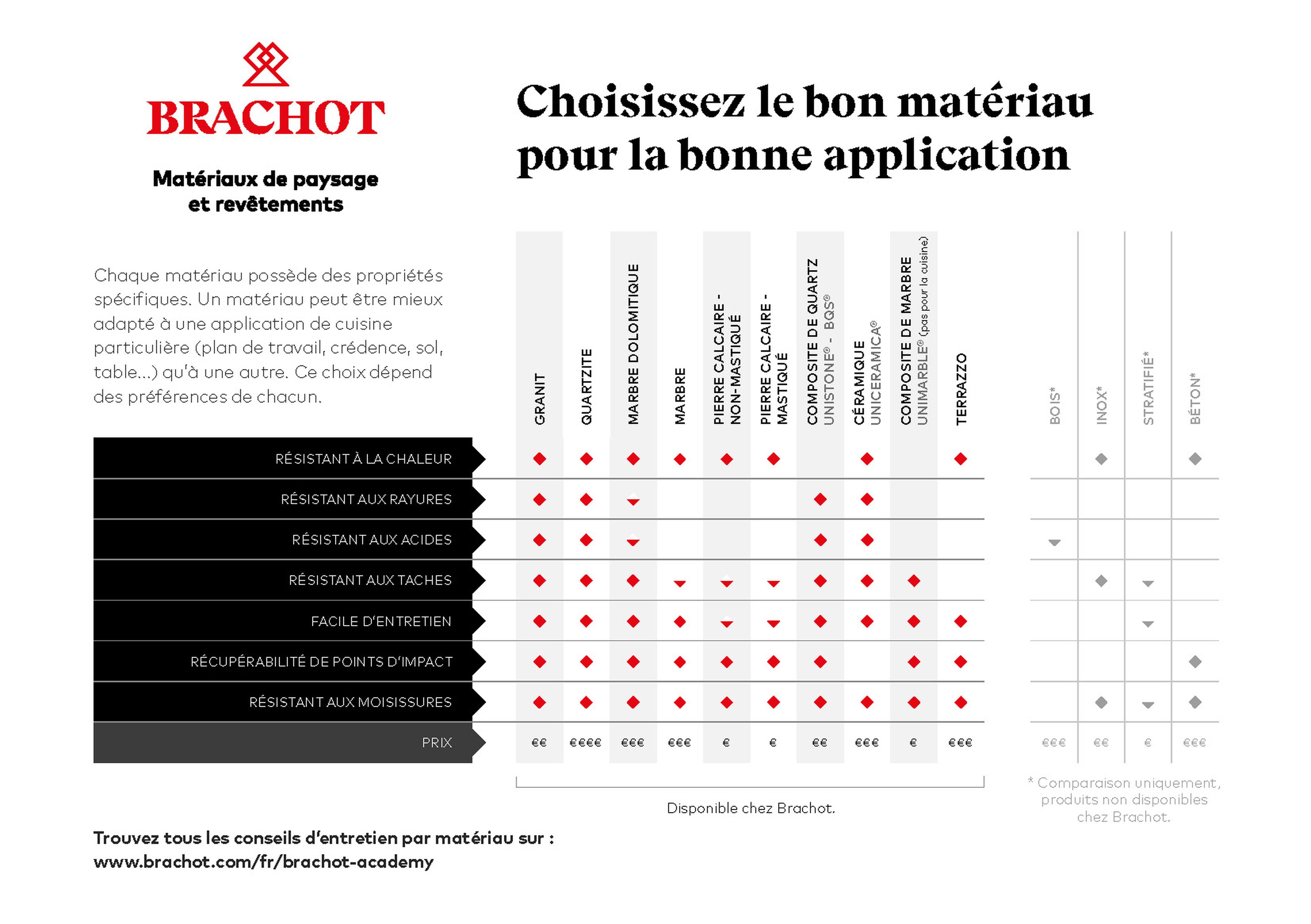 Le tableau ci-dessous vous offre une vue d'ensemble claire des propriétés essentielles par matériau.