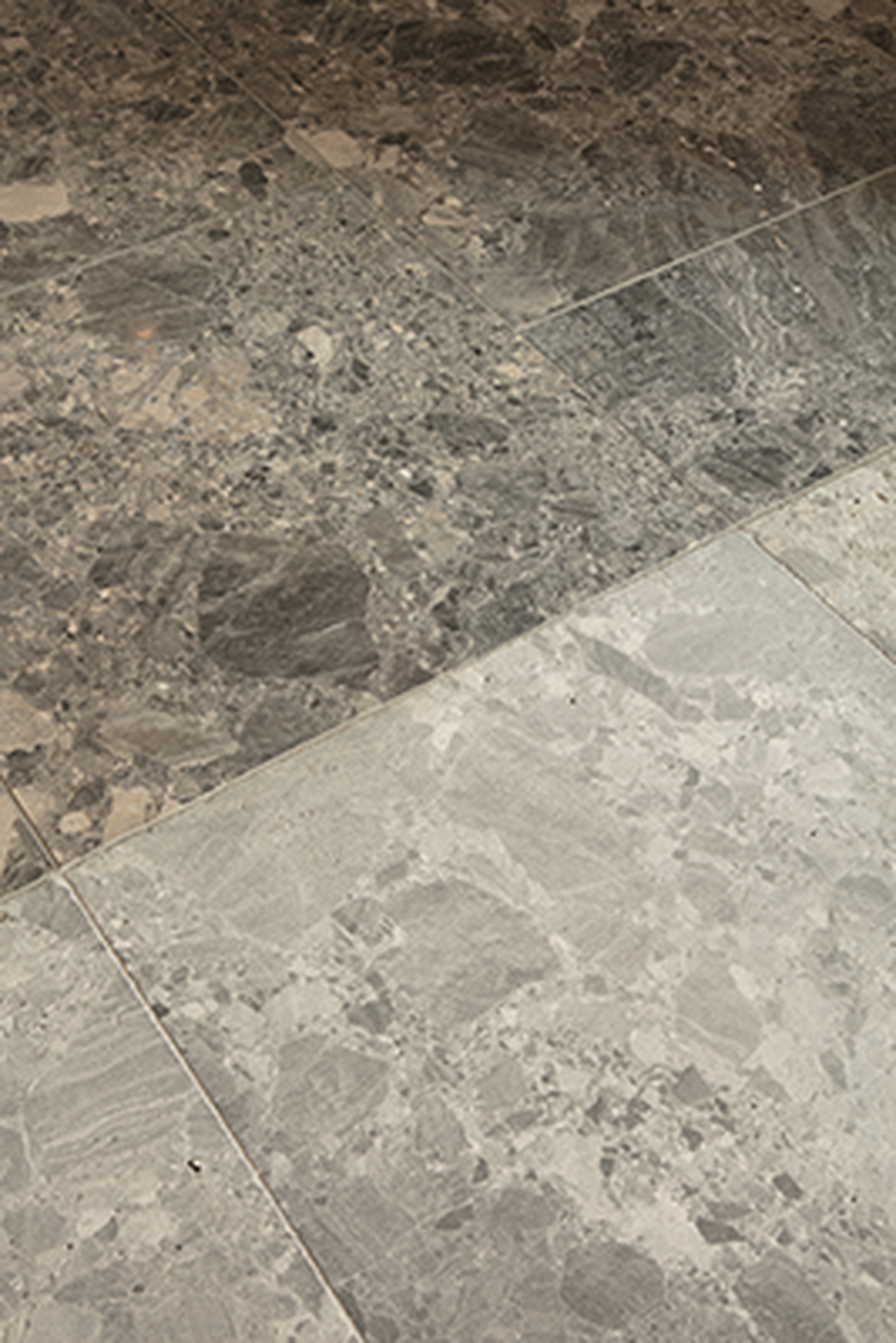 Terrazzo : Des dalles 120/60 et 120/120 dans un certain nombre de tons élégants viennent agrandir la gamme. Le format 60/60 est désormais disponible en finition Arenado. Cette finition confère à la pierre un aspect brut et légèrement granuleux.