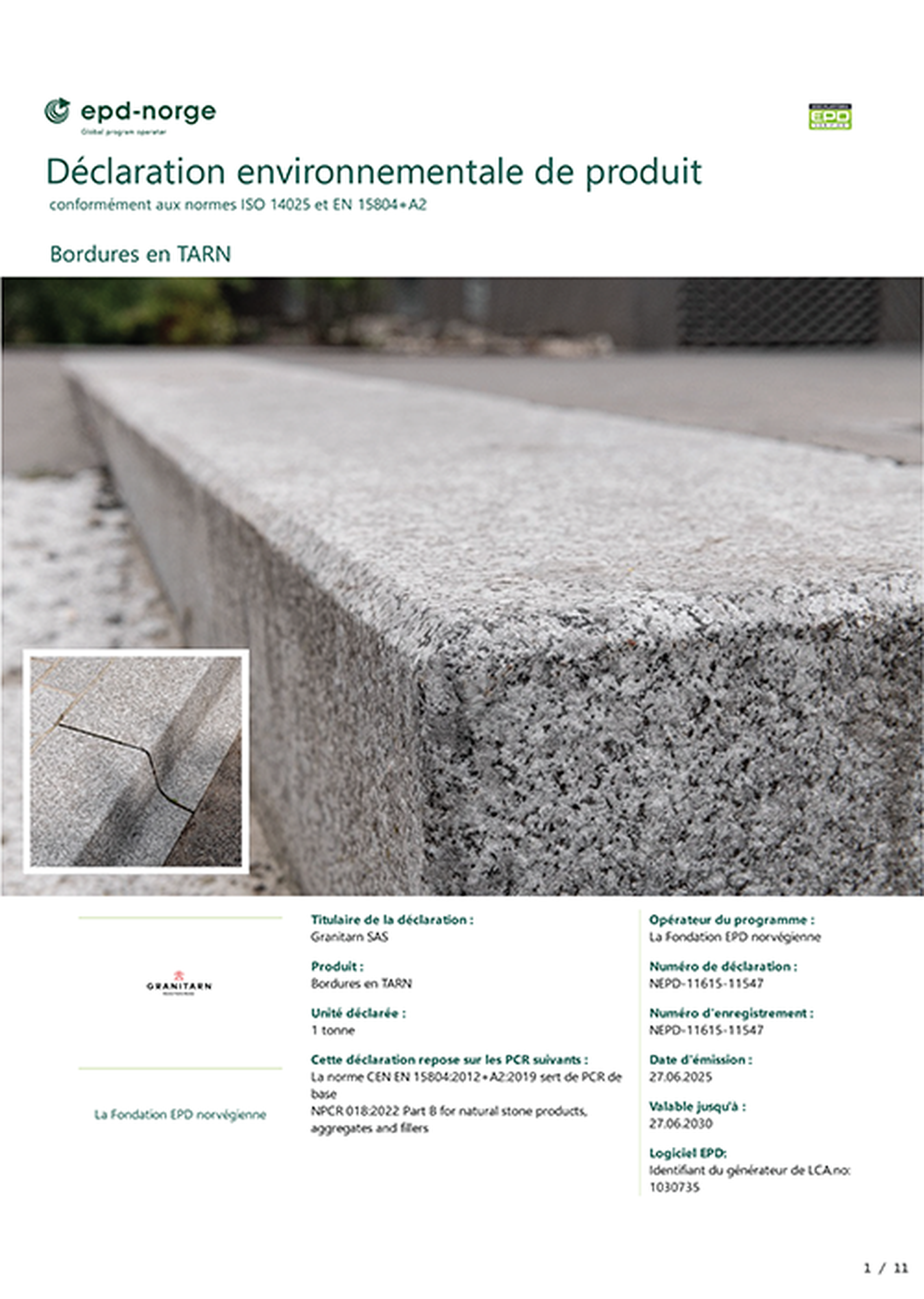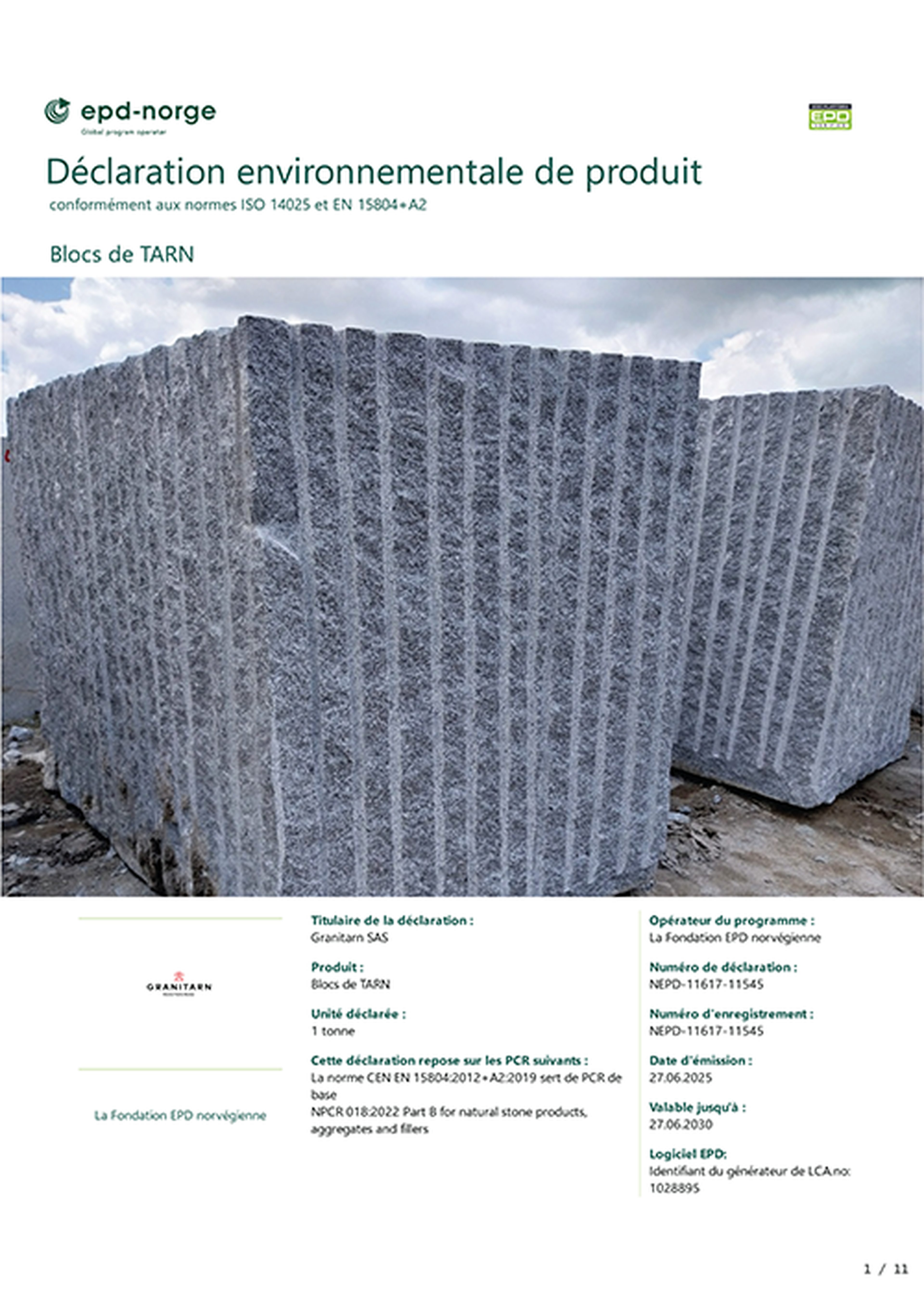 Granitarn extrait le granit local du Tarn dans ses propres carrières. Il s'agit du Tarn Royal, du Tarn Fin Grain et du Tarn Gros Grain. Ces types de granits du Tarn doivent leur dureté et robustesse à la composition du Massif du Sidobre, d’où l’on extrait des blocs de haute qualité.