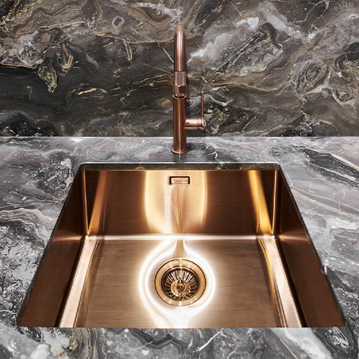 Con il tempo, il marmo sviluppa una patina naturale che ne valorizza carattere e fascino. Con la giusta manutenzione, questa patina resta bella e la superficie può diventare più resistente a graffi e acidi. Il marmo è anche resistente al calore, quindi perfetto per la cucina.