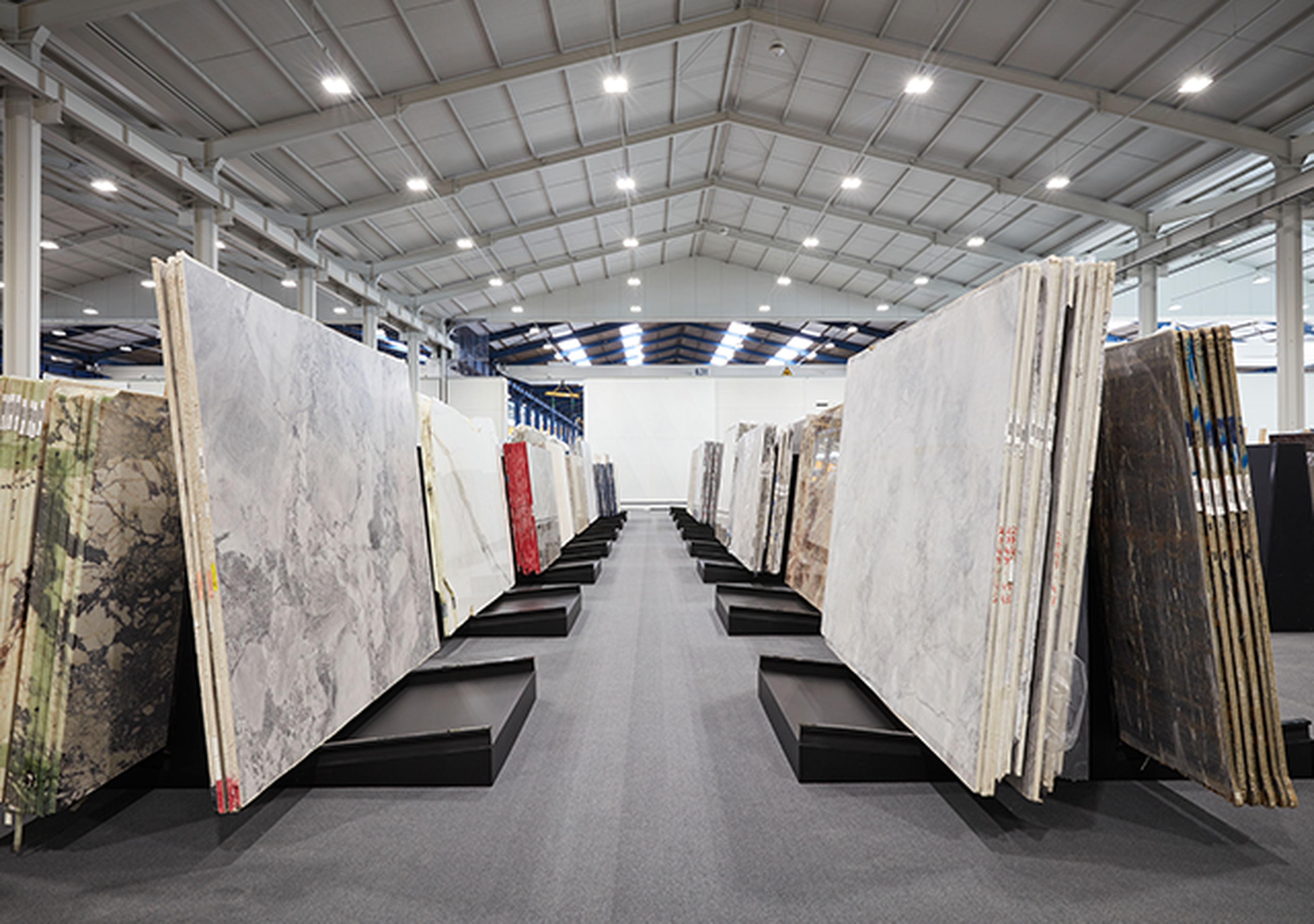 I materiali provenienti dalle cave dei nostri Brachot Family Members sono ben rappresentati. Ad esempio, il Kilkenny Limestone è presente nella pavimentazione interna della reception e degli uffici, le lastre da Cameleon in Sud Africa sono utilizzate per il rivestimento della facciata e i materiali Tarn di Granitarn sono impiegati in diverse applicazioni esterne. Nella nostra Stone Gallery sono rappresentati anche i materiali compositi come Unistone® (quarzo composito) e Unimarble (marmo composito), Terrazzo e la nostra serie di gres porcellanato Uniceramica®.
