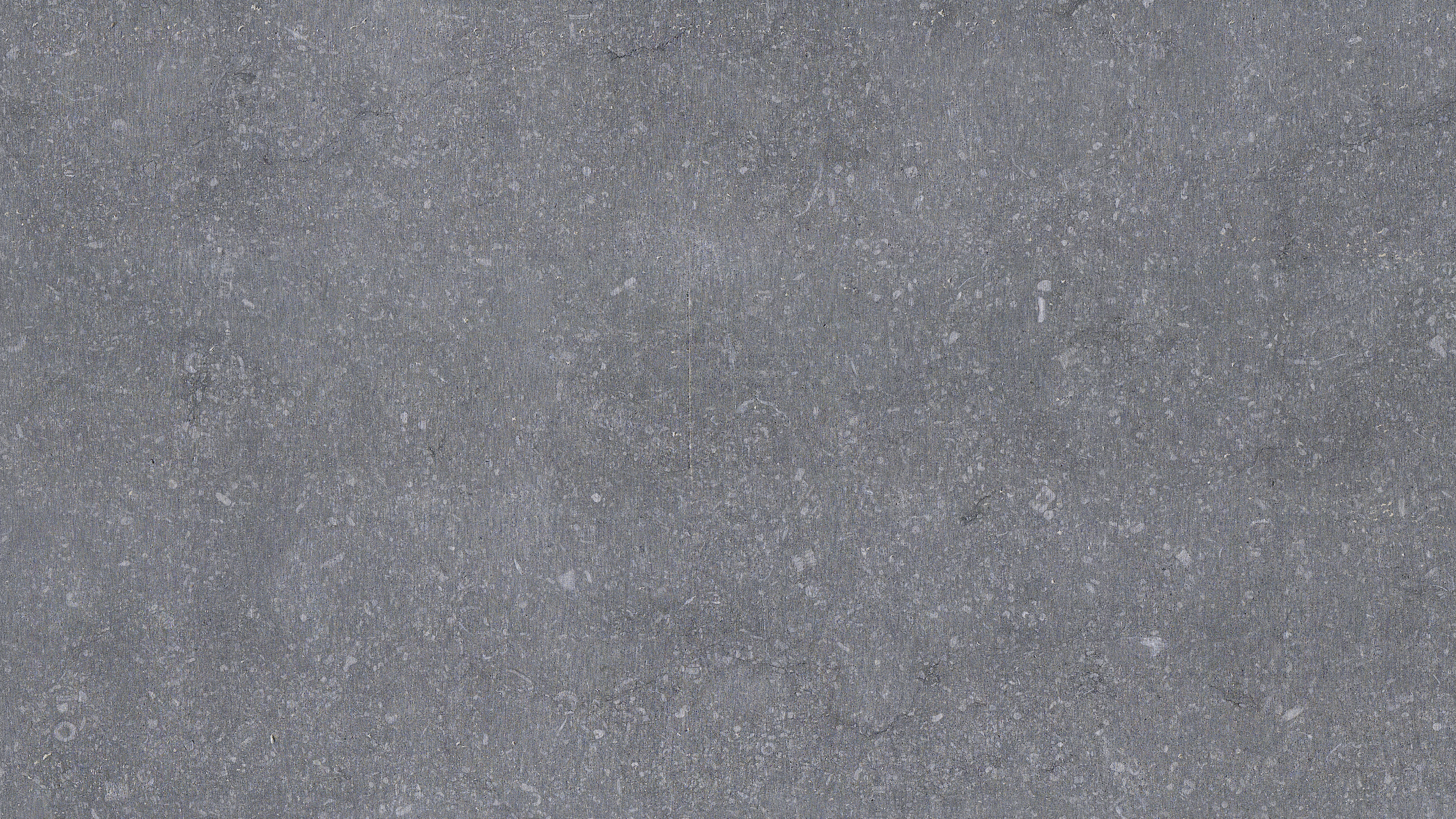 Descrizione:Limestone compatto grigio-blu con fossili di crinoidi, fossili bianchi (coralli e conchiglie), venature bianche e venature irregolari sottili nere (stiloliti) in superficie.
