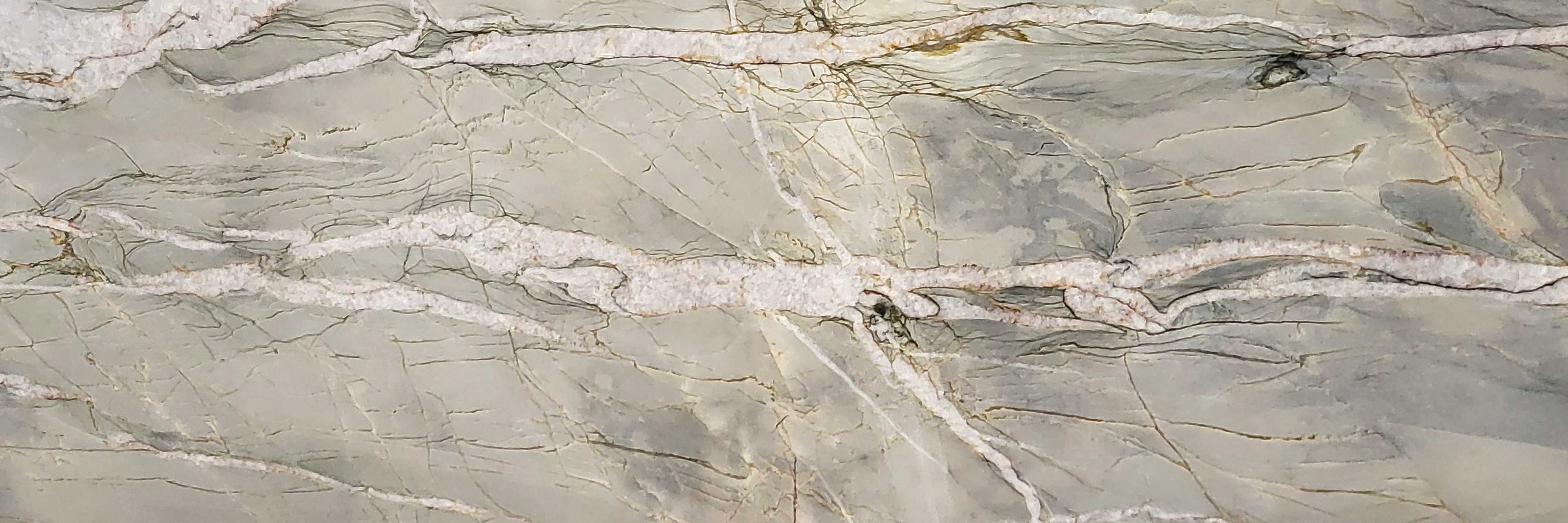 Descrizione:Quarzite verde chiaro a grana fine, con venature bianche più larghe e sottili venature scure sparse sulla superficie.