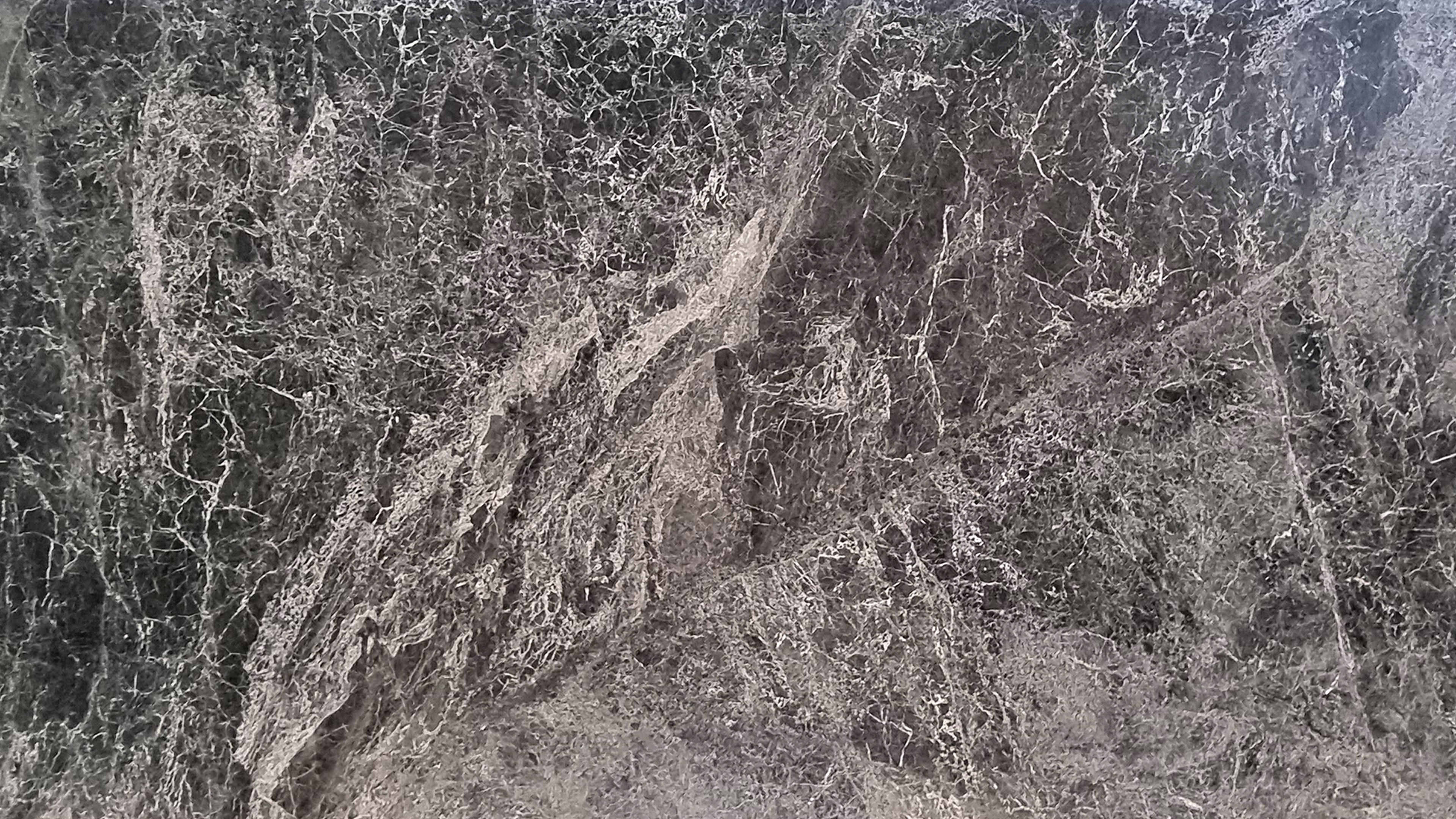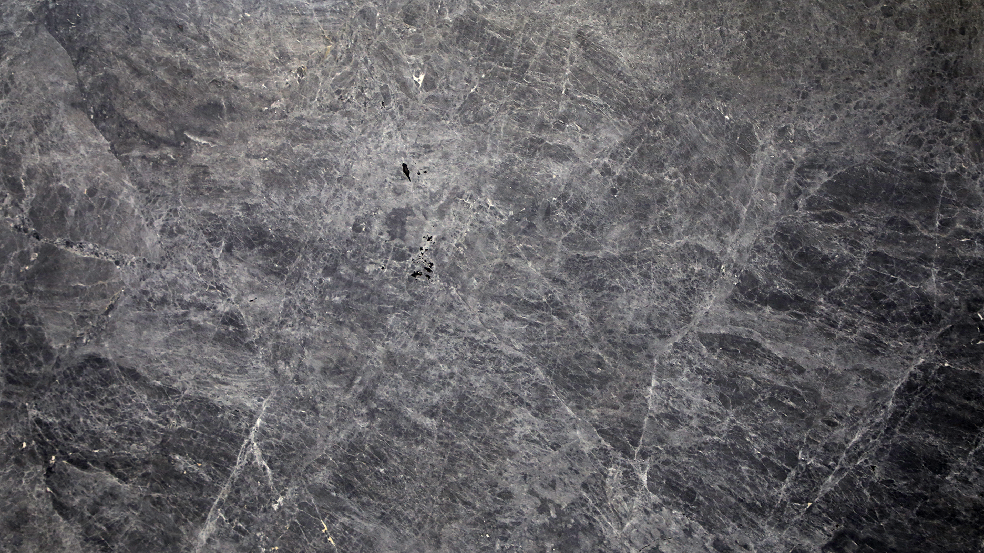 Descrizione:Marmo con una colorazione che va dal grigio scuro al nero, con frammenti di roccia scuri circondati da venature più chiare.