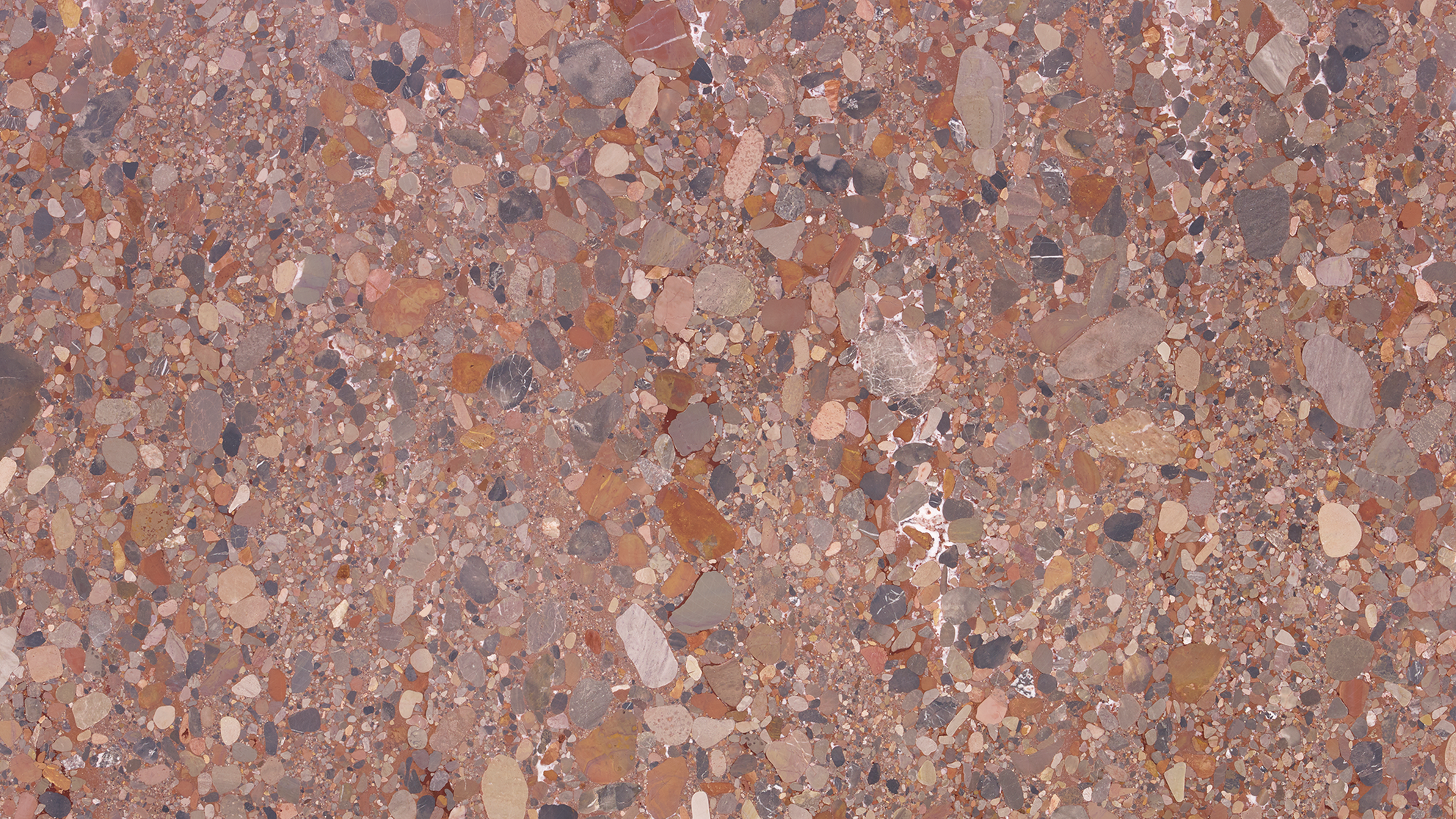 Descrizione:Conglomerato naturale caratterizzato da un colore rosso e frammenti di roccia multicolore tondi.