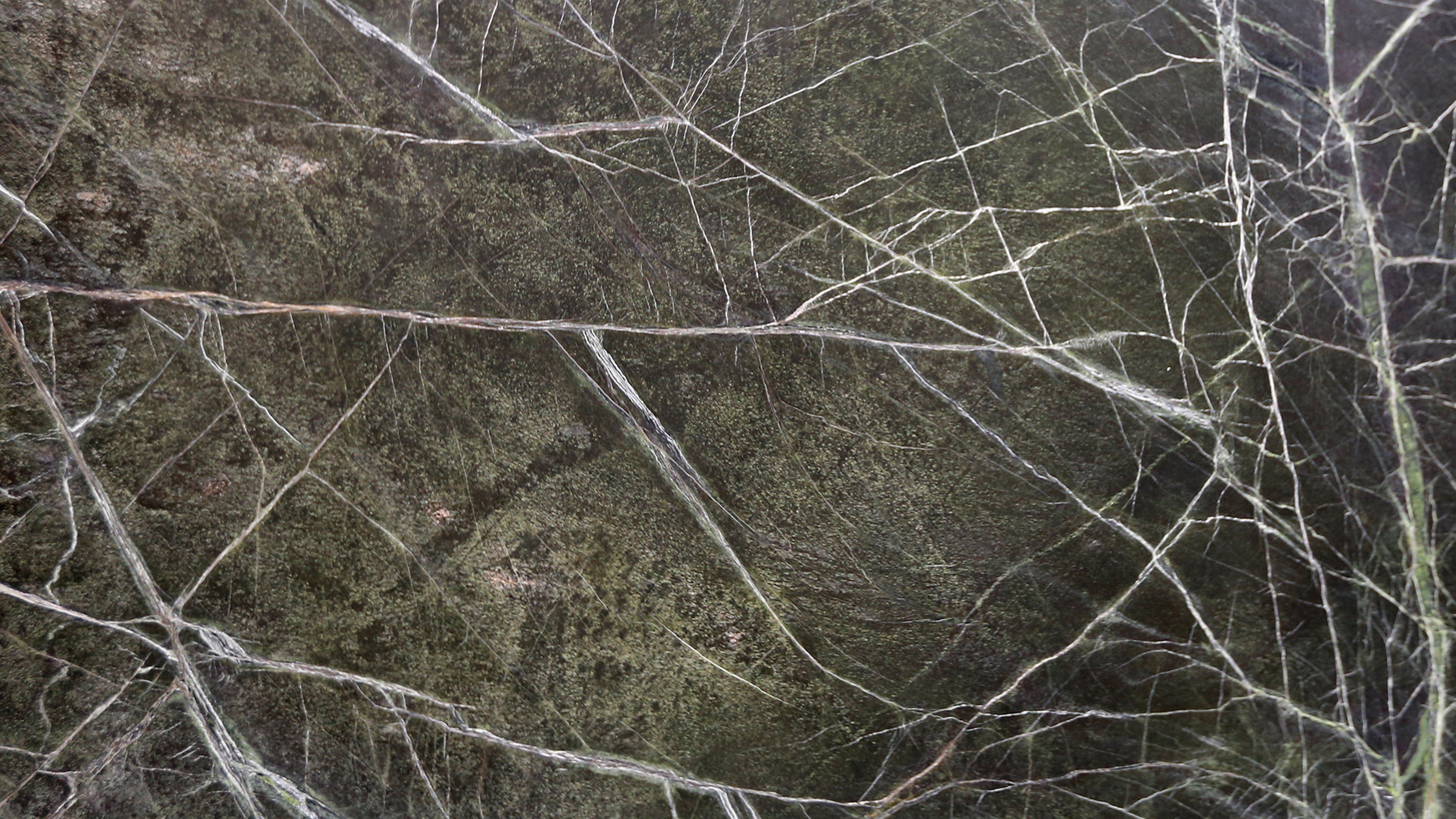 Descrizione:Marmo verde con una superficie costellata di venature più scure e/o più tenui.