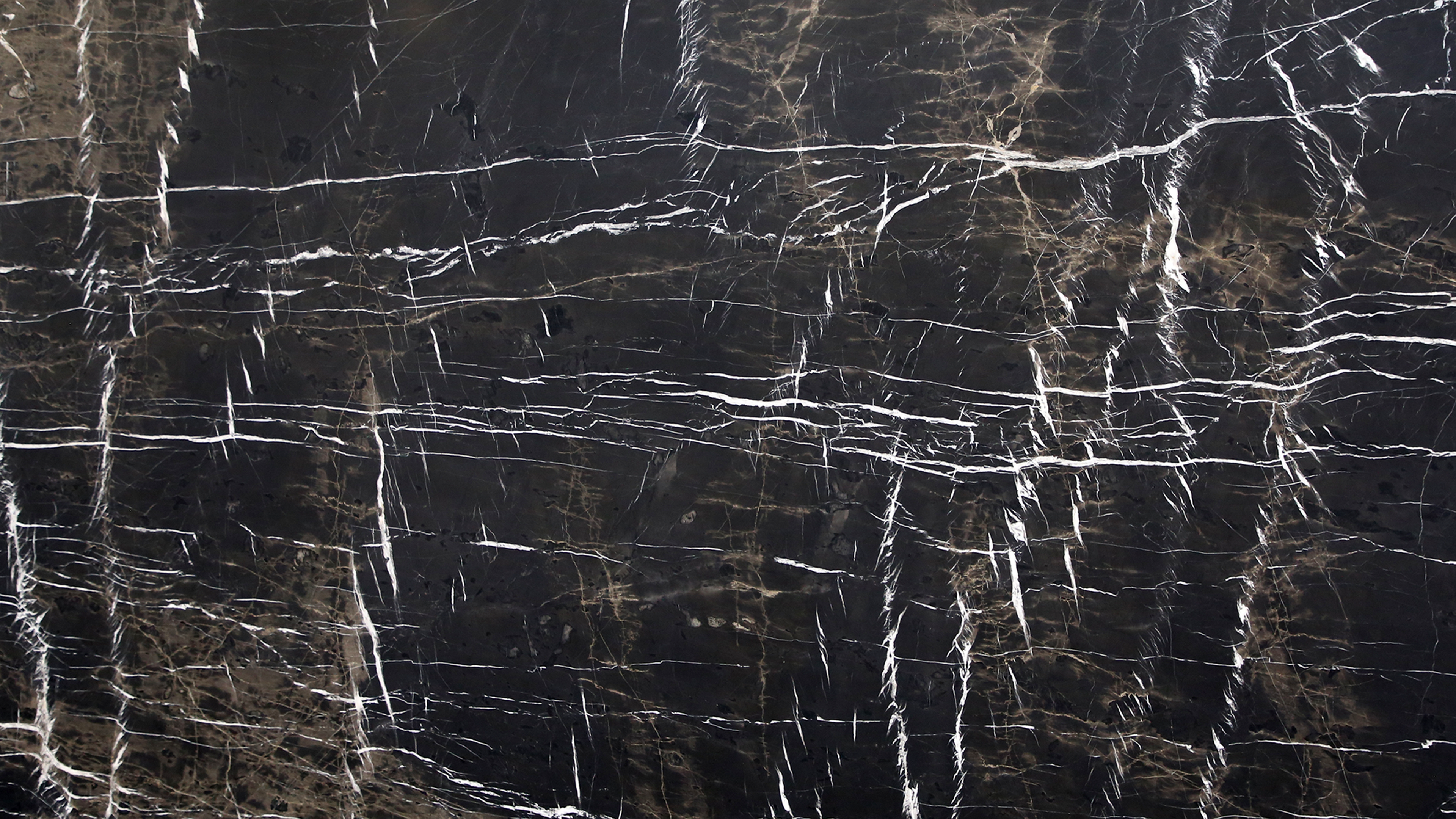 Descrizione:Limestone compatto a grana molto fine, che vira dal marrone scuro al nero, cosparso di venature bianche.
