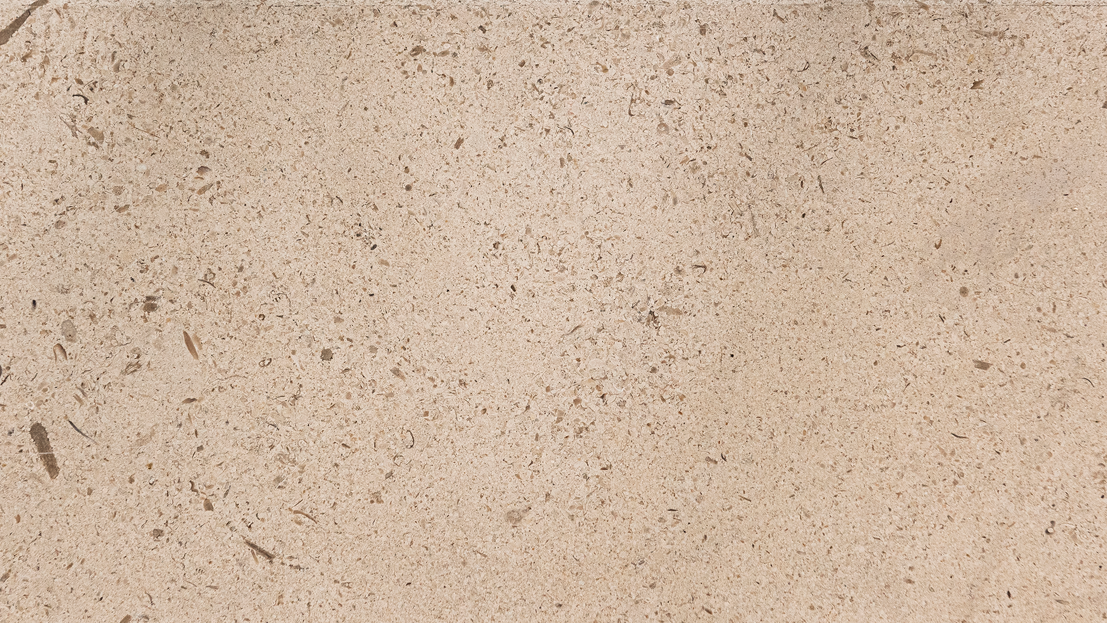Descrizione:Limestone sedimentario dal fondo beige chiaro con concentrazioni più o meno sparse di particelle nere-marroni e talvolta una venatura leggera.