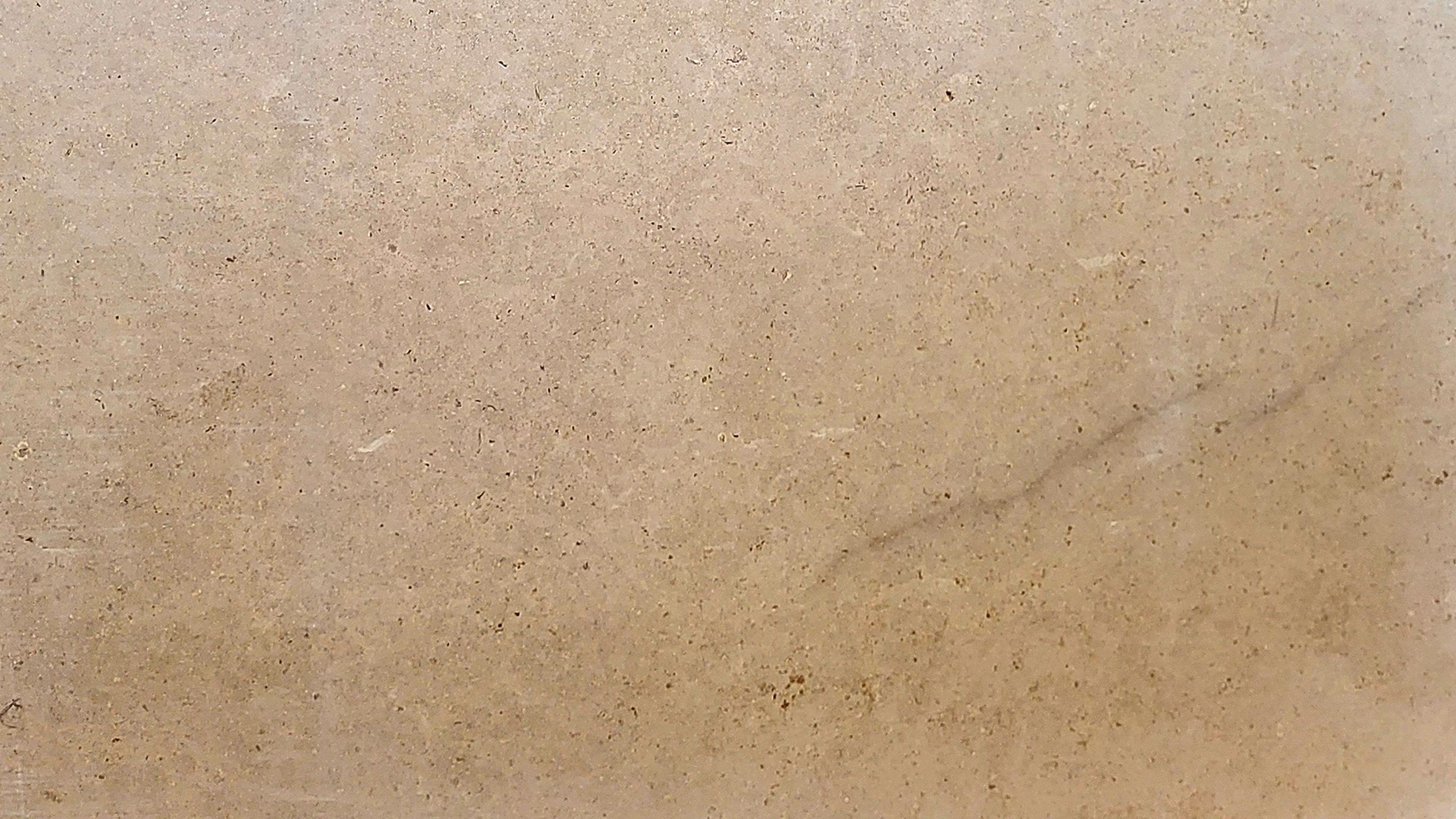 Descrizione:Limestone di colore beige-grigio con una superficie costellata di venature più scure e fossili e talvolta piccole particelle di ruggine.