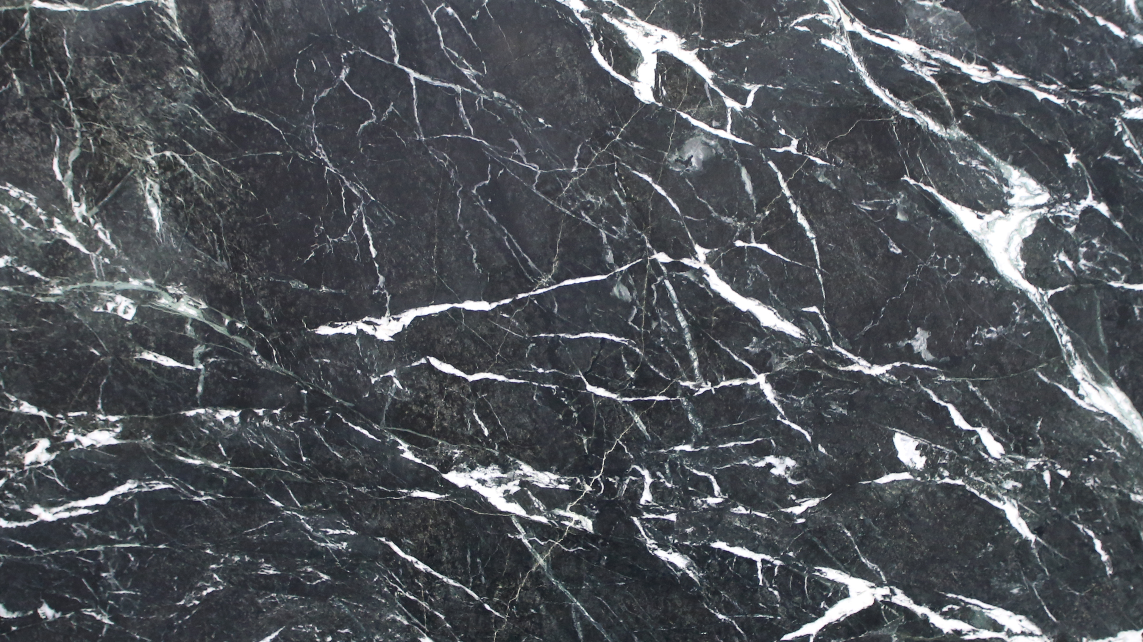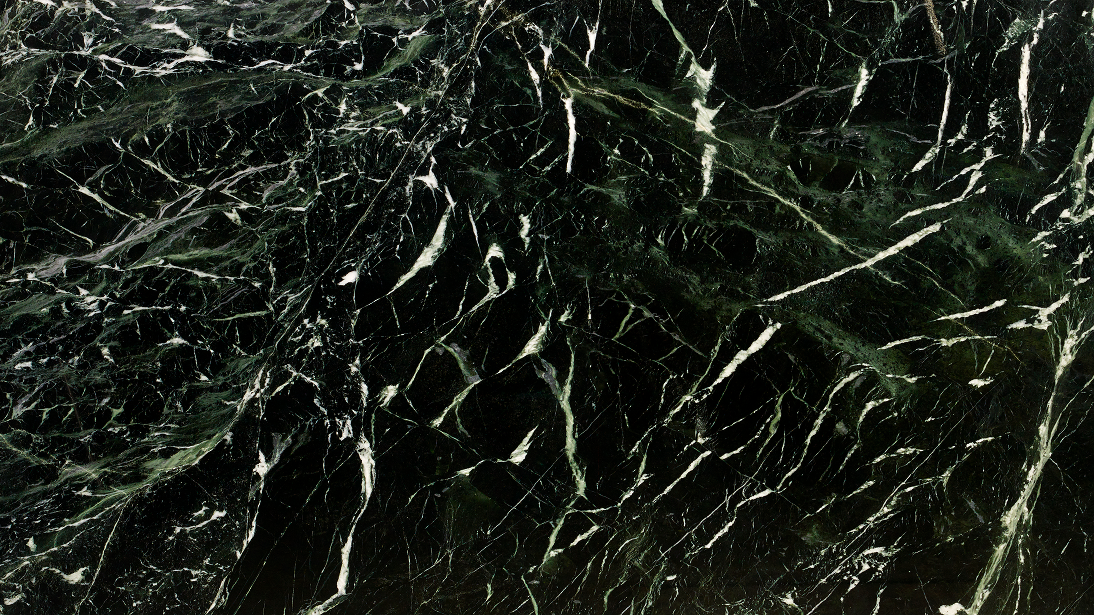 Descrizione:“Marmo” a grana fine di colore verde scuro con venature bianche e frammenti più scuri.