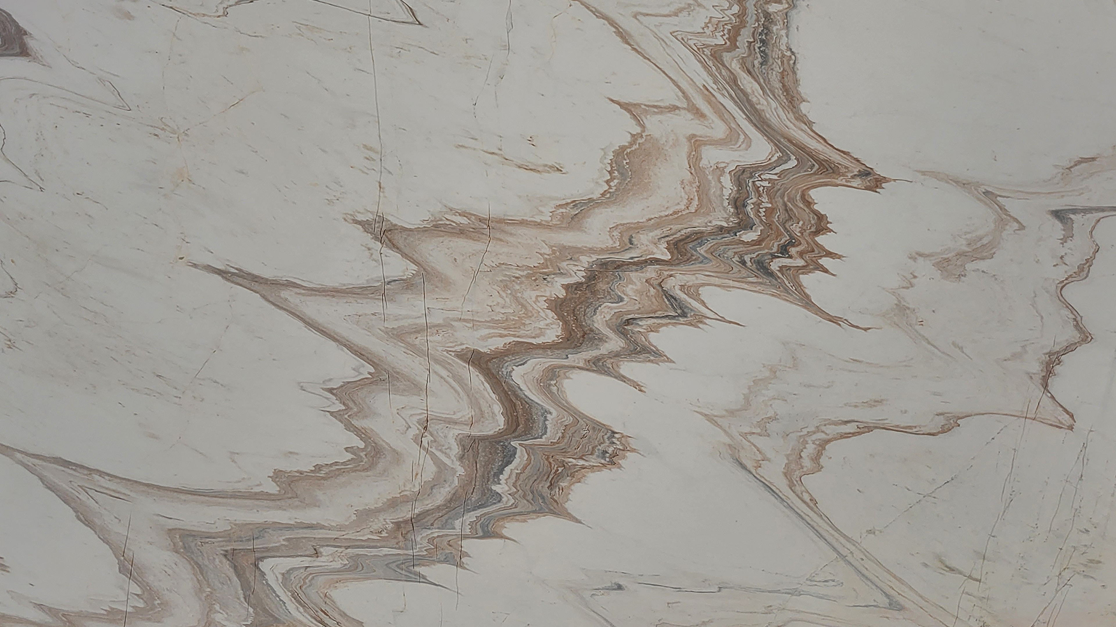 Descrizione:Marmo dal fondo principalmente bianco-bianco/grigio costellato di venature più scure/sui toni del marrone e ben definite