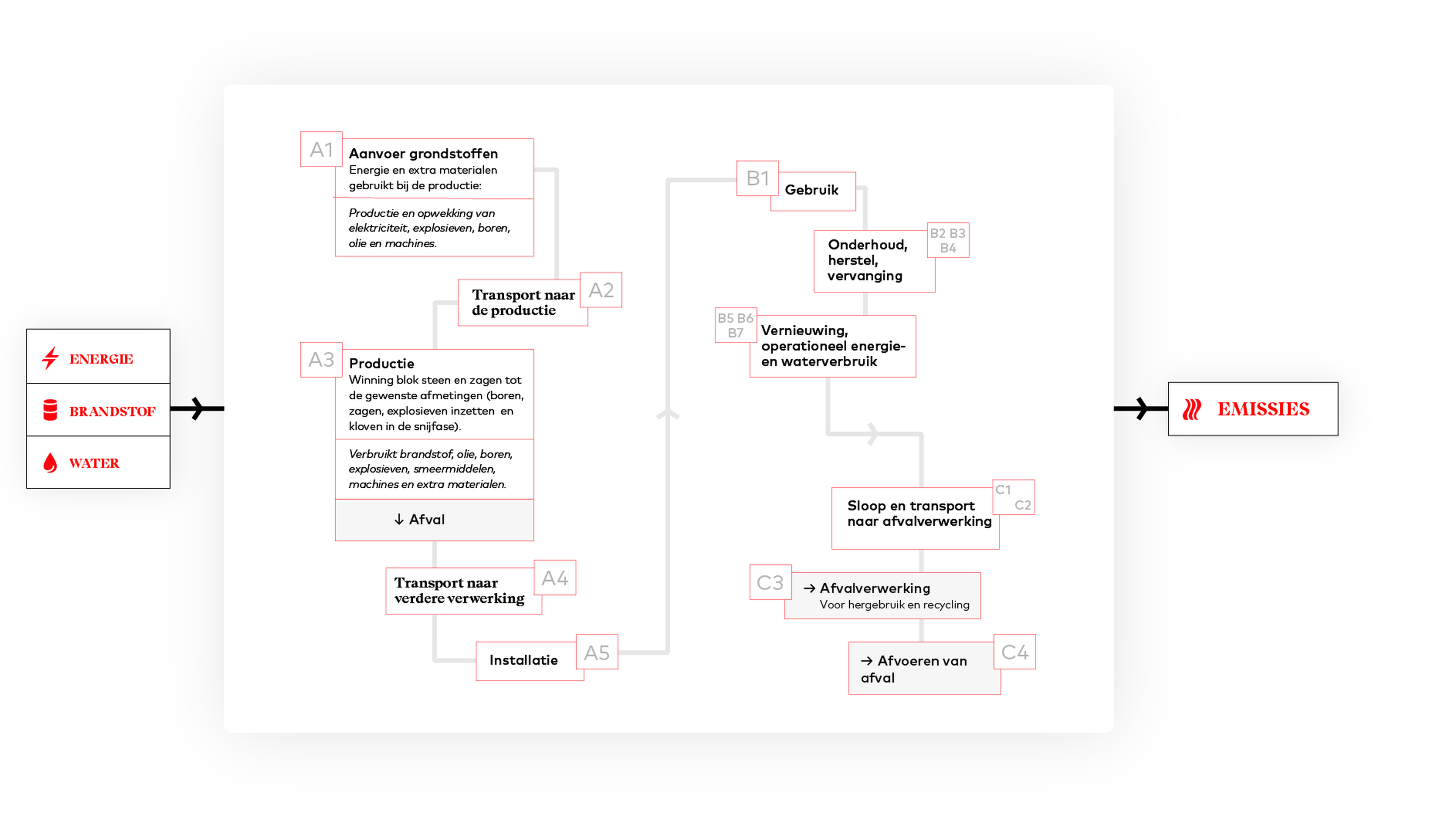Een EPD fungeert als een identiteitskaart voor een product, waarbij elke fase van zijn levenscyclus wordt geanalyseerd - van de winning van grondstoffen tot aan de afdanking (van wieg tot graf) of hergebruik (recycling of down cycling). Dit zorgt voor een grondige evaluatie van de milieuprestaties en maakt transparante communicatie mogelijk. Door het gebruik van precieze indicatoren biedt een EPD een objectieve basis voor het vergelijken van de milieu-impact van verschillende materialen, waardoor bedrijven, architecten en consumenten weloverwogen en duurzame keuzes kunnen maken.