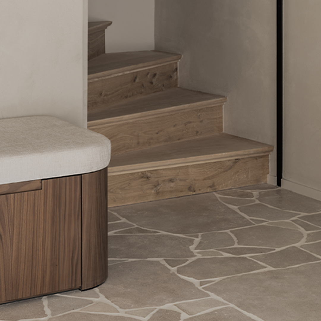 Een trend die zich in 2026 doorzet, is het toenemende gebruik van organische, afgeronde en ovale vormen. Wat we vorig jaar al zagen in buitenruimtes, denk aan vrije vormen en flagstones, vindt nu ook zijn weg naar het interieur. Dat sluit aan bij een bredere behoefte aan comfort, warmte en een gevoel van geborgenheid.