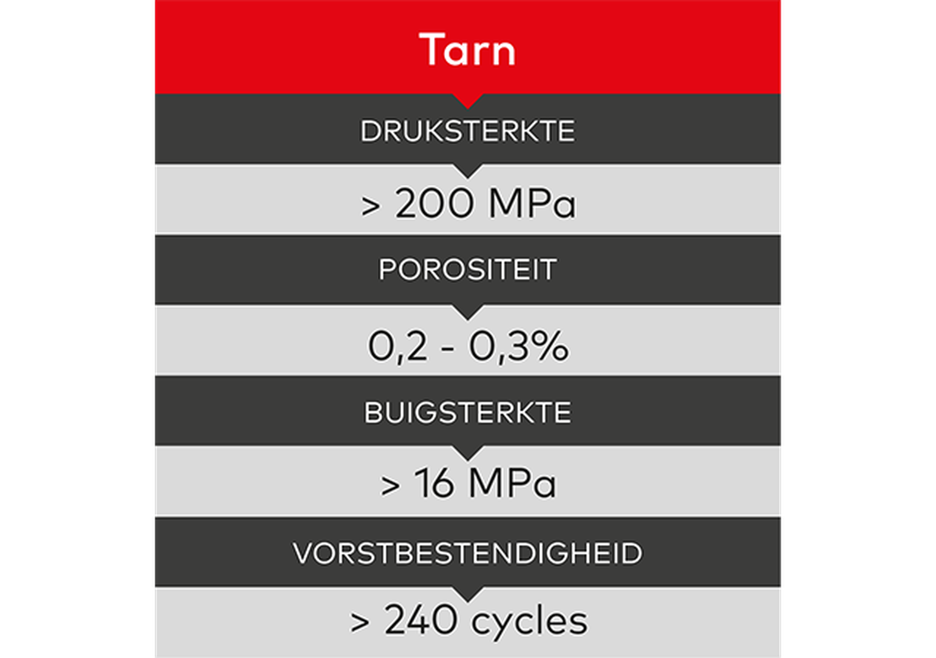 uitstekende weerstand tegen vorst-dooicycli (> 240 cycli volgens EN 12371)