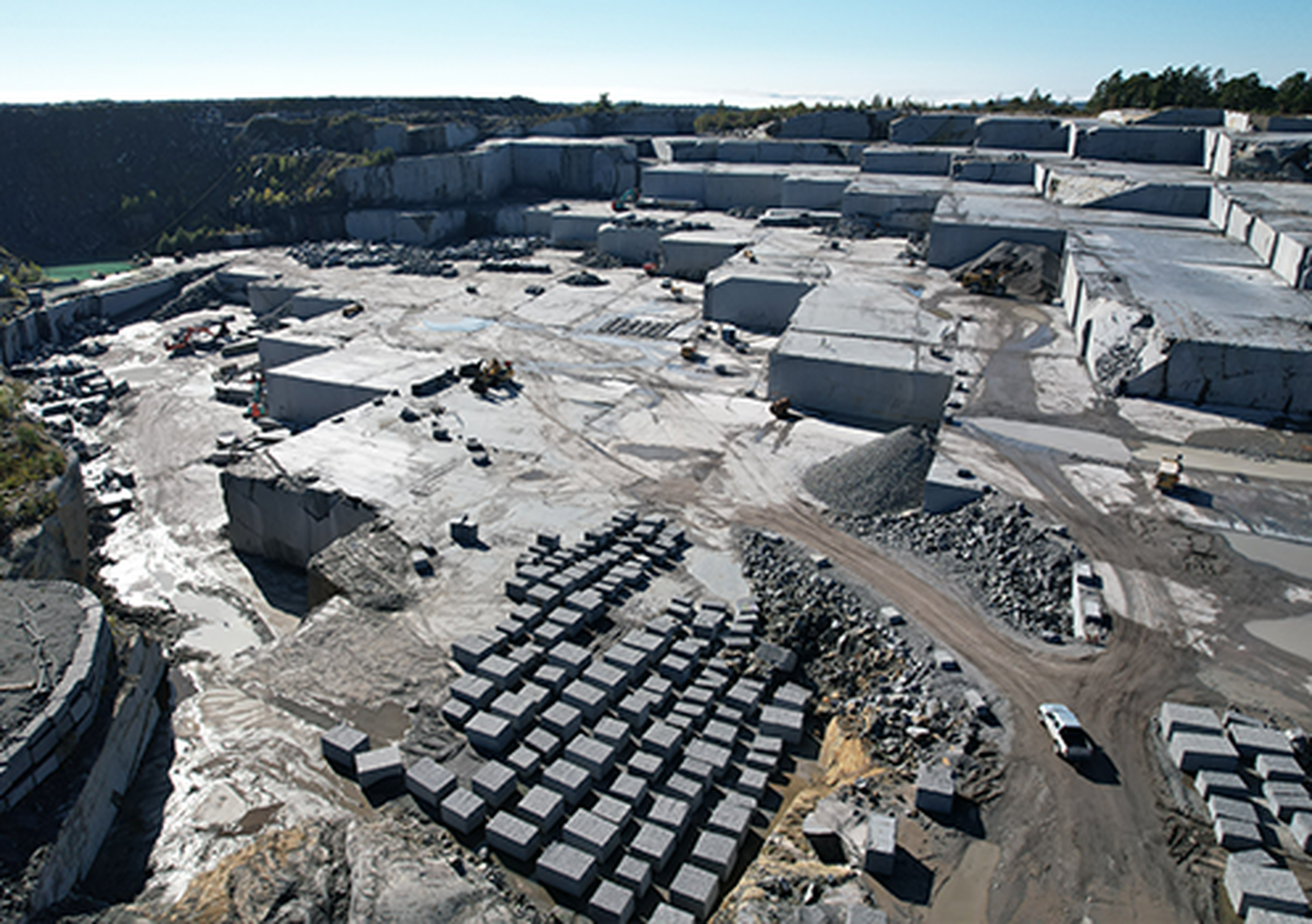 Onze Silver Pearl® #5 groeve in Haakestad beschikt over een enorme en unieke natuurlijke rijkdom en is ons topproduct op het vlak van productievolumes. Dankzij de stabiele, continue productie kunnen we perfect inspelen op de vraag van de klant en blokken produceren met de gewenste afmetingen, wat uniek is. De Silver Pearl #5 groeve produceert blokken in groot formaat en in uniforme kleur.