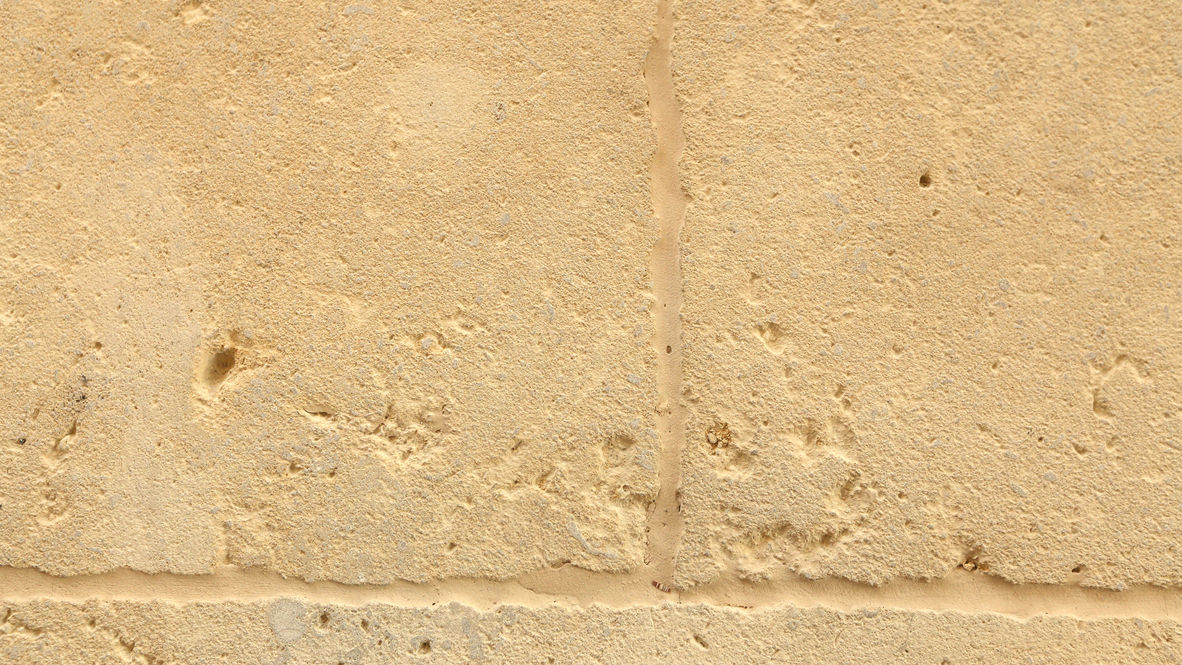 Beschrijving:Geel-bruine kalksteen, met een "gewolkt" uitzicht met donkere spikkels en schelpen(resten). Sporadisch komen grotere fossielfragmenten voor. Er komen open poriën in het materiaal voor. Het gesteente is middelmatig tot fijnkorrelig.