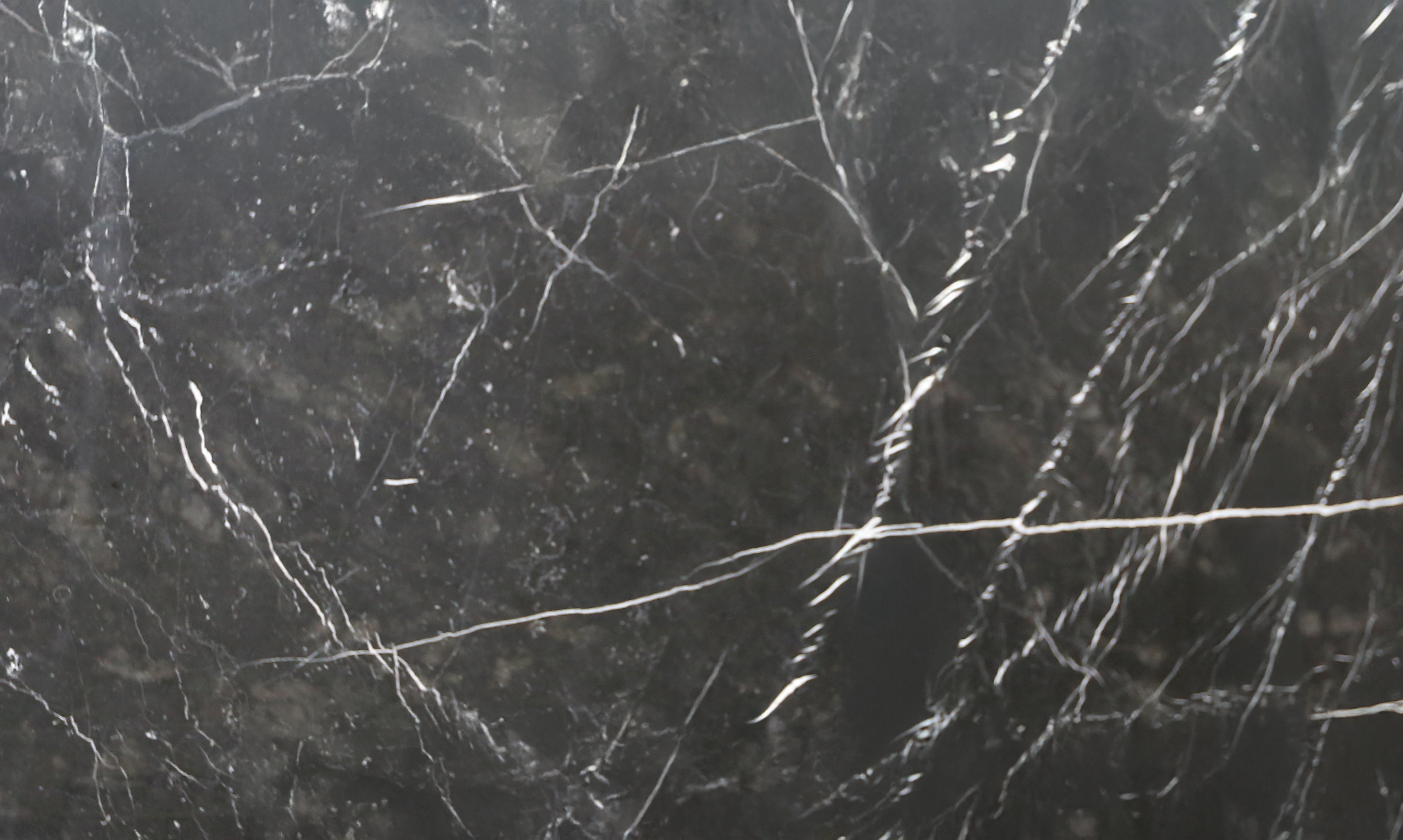 Beschrijving:Spaanse fijnkorrelige compacte kalksteen met een zwarte achtergrond en een verspreide witte adering/fossielen.