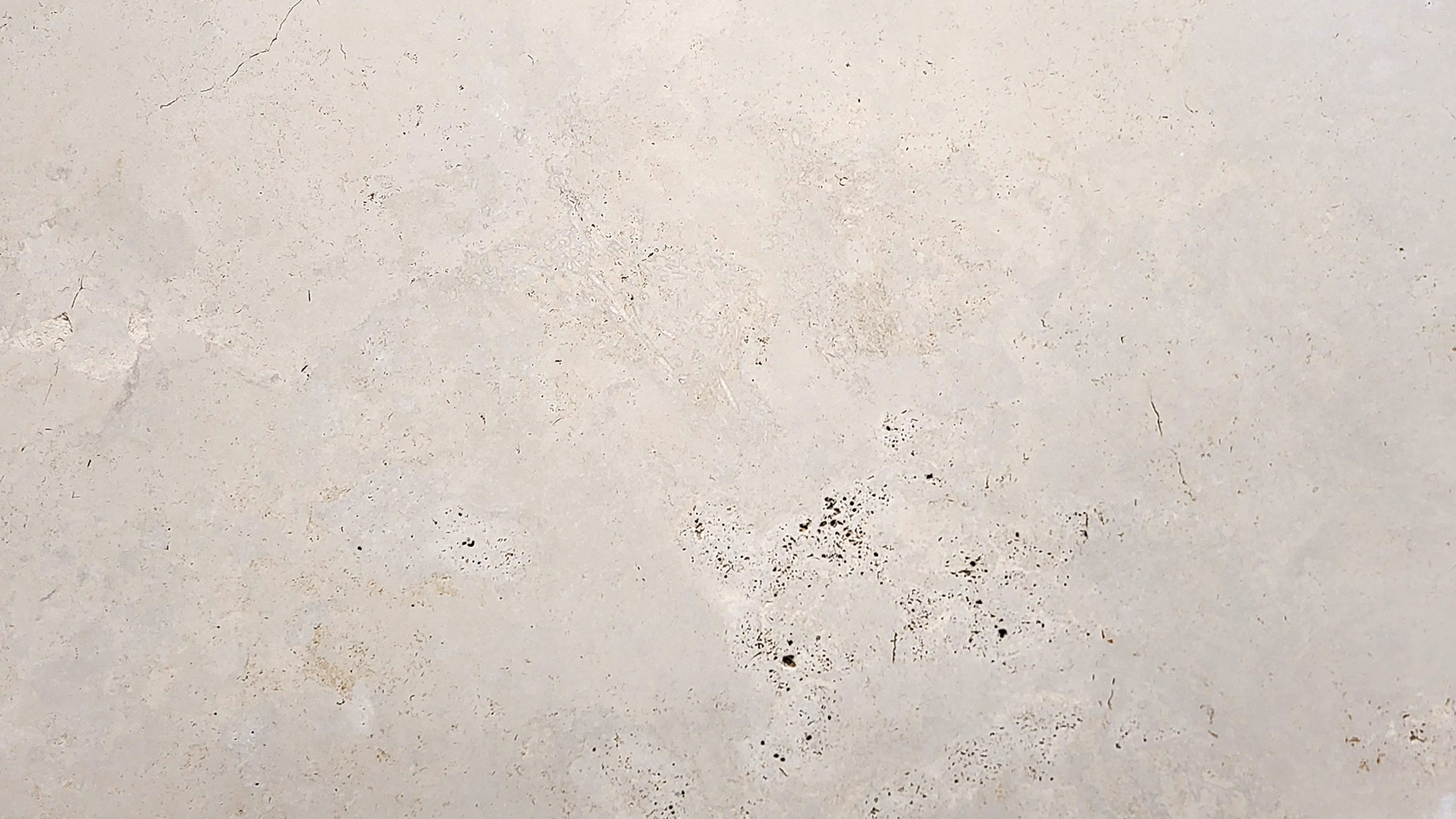 Beschrijving:Beige compacte kalksteen ("travertijn") met “wolkvormige” structuur door typische poriënstructuur. Het oppervlak bevat kleine openingen die naargelang de vraag al of niet gevuld worden (poriën worden meestal gevuld bij plaatsing met aangepaste voegspecie). Fossielen kunnen aanwezig zijn doorheen het materiaal.