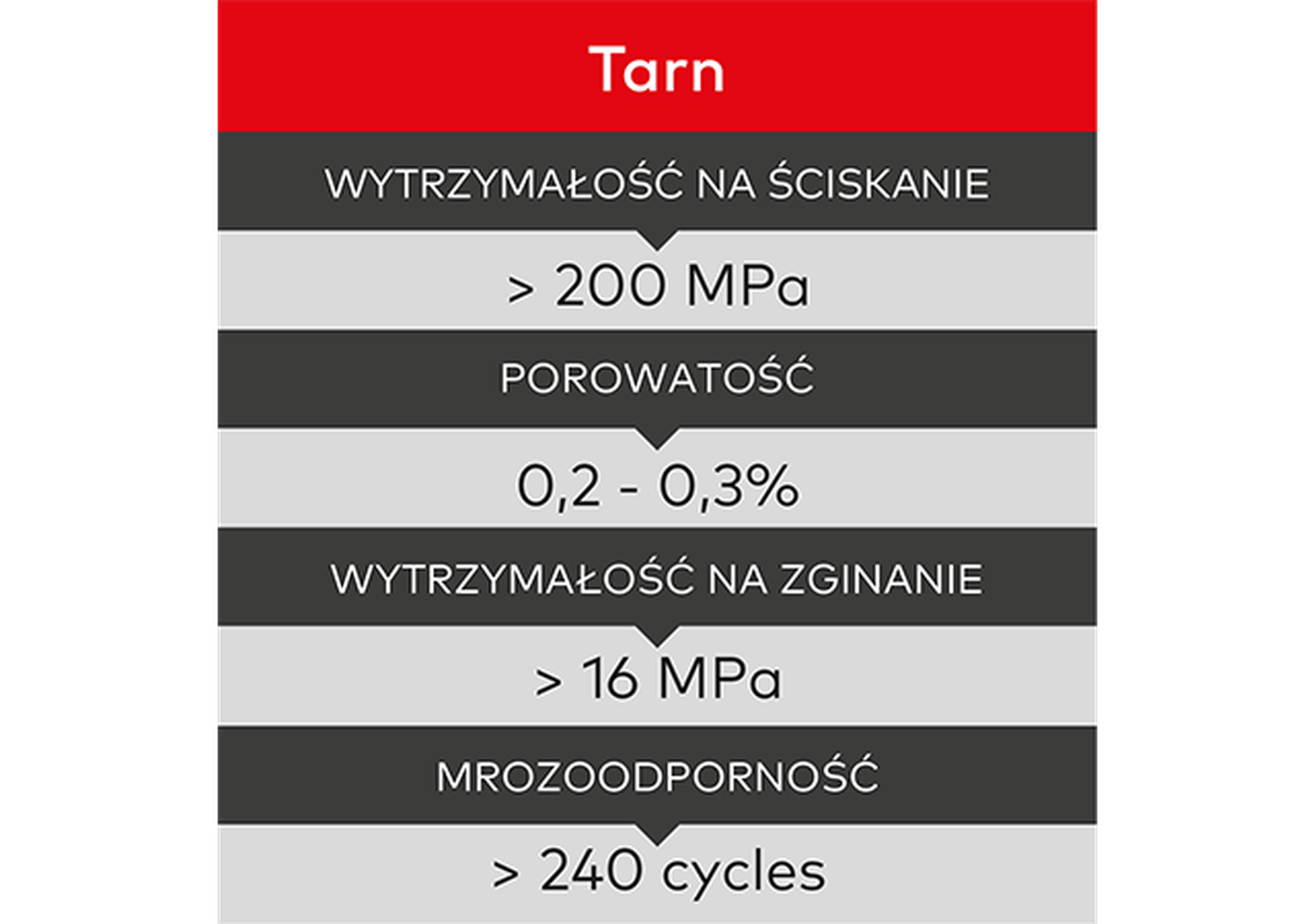 > 16 MPa (wysoka odporność dla płyt, nawierzchni i krawężników zgodnie z EN 1341 i EN 1343)