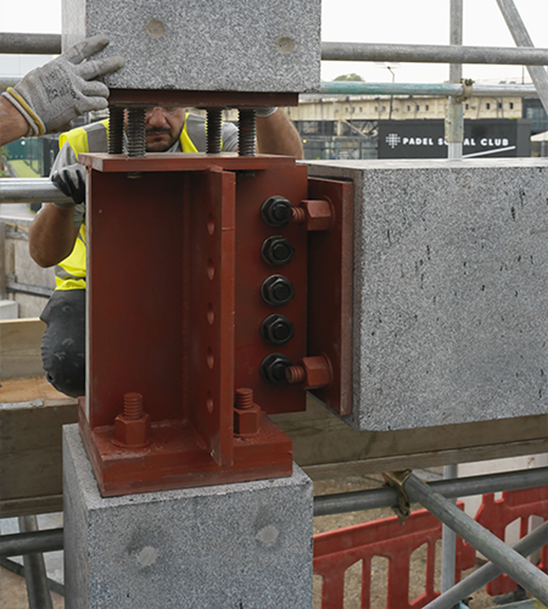 Zaprojektowany przez GROUPWORK, opracowany konstrukcyjnie przez Steve’a Webba i zrealizowany we współpracy z wiodącymi partnerami z branży, w tym firmą Brachot, projekt łączy zaawansowaną inżynierię z naturalnymi materiałami. Brachot dostarczył szarą kamienną część konstrukcyjną w tylnej części demonstratora — dwa rodzaje portugalskiego granitu — zastosowane z techniką sprężania wstępnego, która pokazuje potencjał kamienia w nowoczesnym budownictwie.